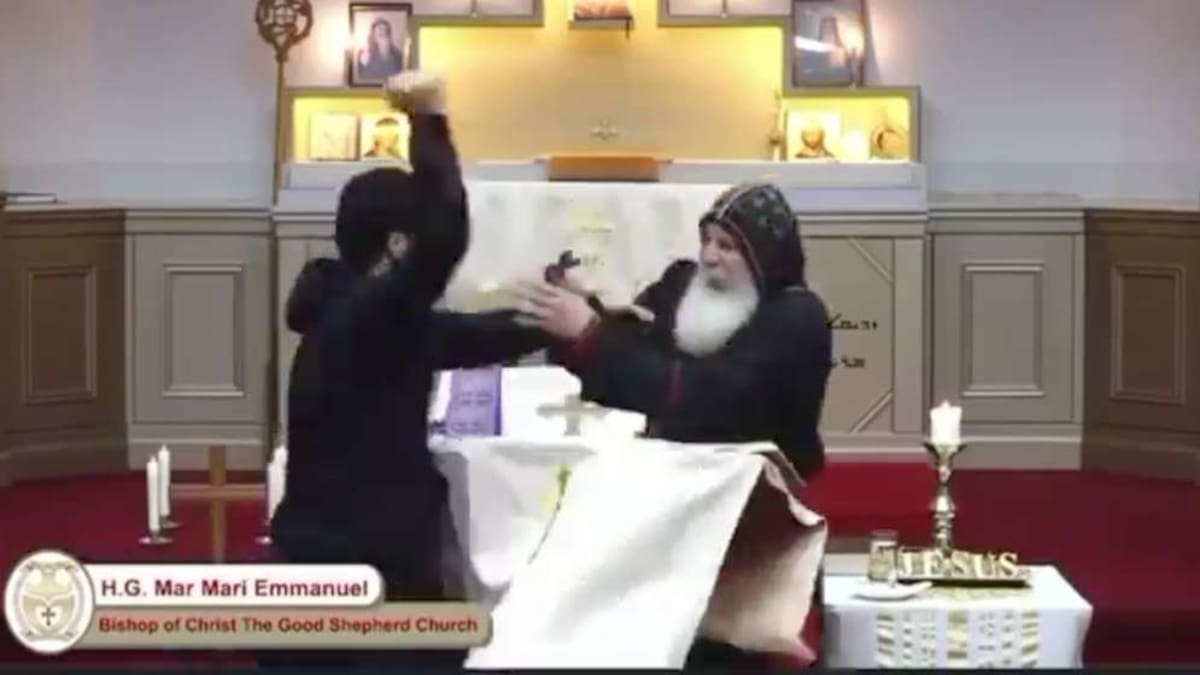 A graphic video of the attack shows a person lunging at the Bishop during a mass.