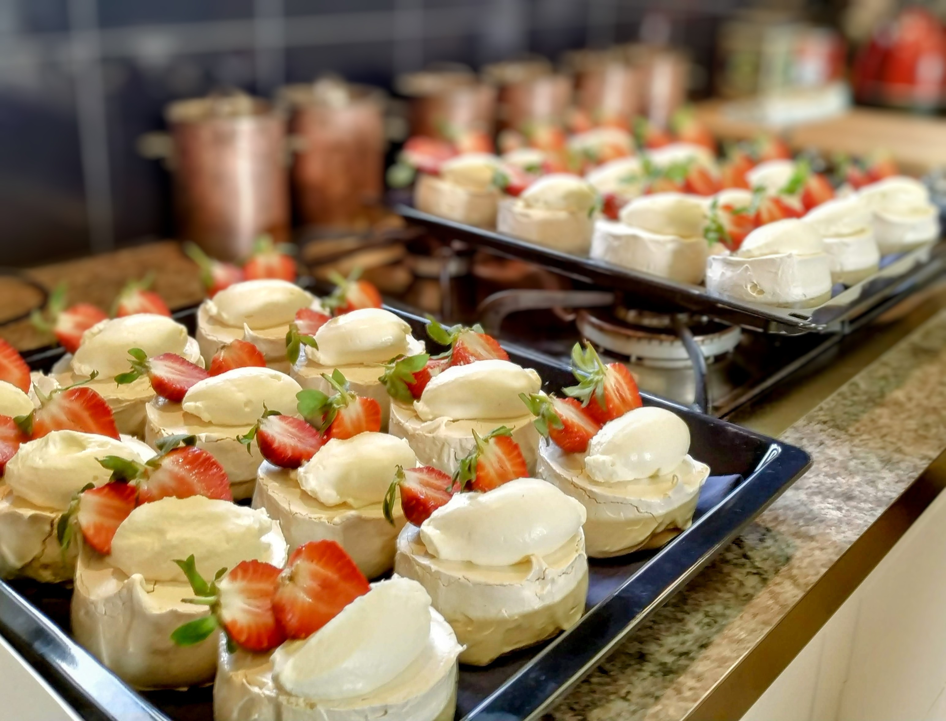 - Reduce the oven temperature to 100C. Add the moulded pavlovas to the oven.