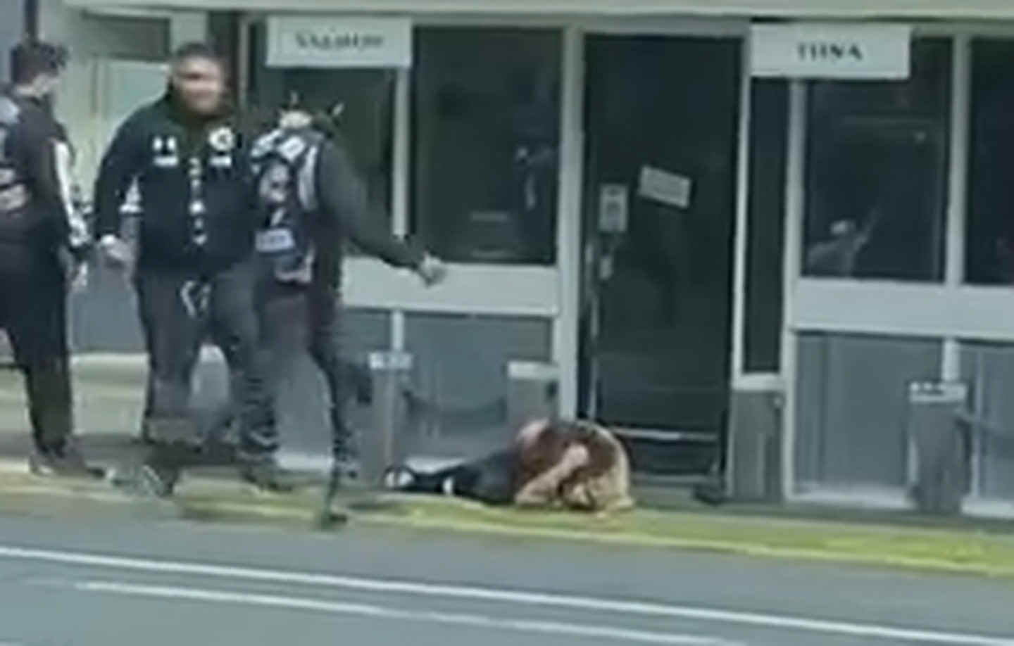 A video obtained by Newstalk ZB shows several Rebel gang members attacking what appears to be members of the public on the side of the street in Coromandel township. Â