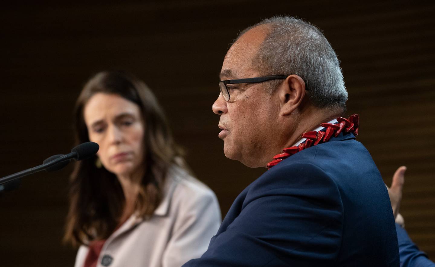 Prime Minister Jacinda Ardern and Pacific Peoples Minister Aupito William Sio announcing the historic apology. (Photo / Mark Mitchell)