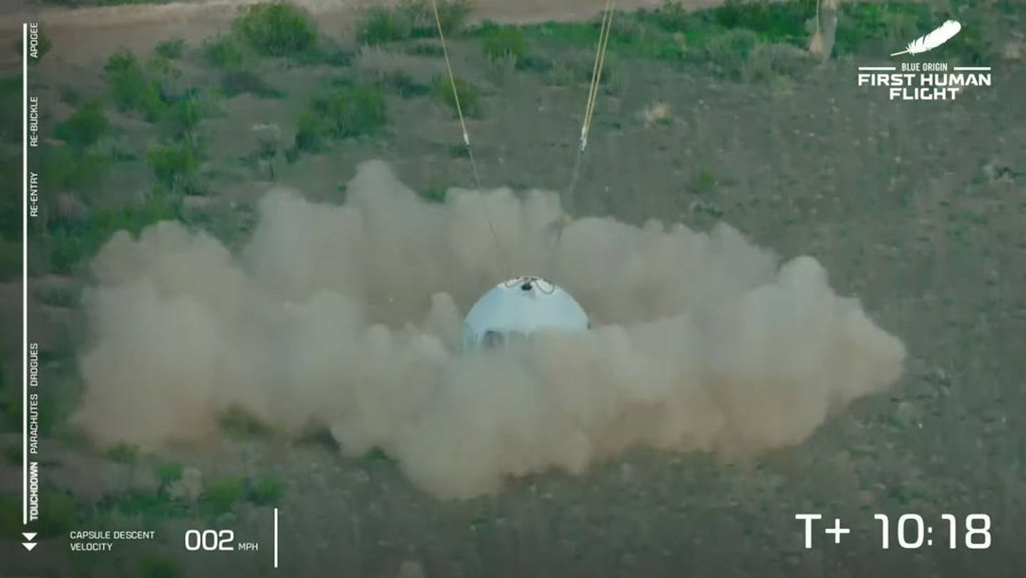 "Best day ever!" Bezos said when the capsule touched down on the desert floor in remote West Texas after the 10-minute flight.