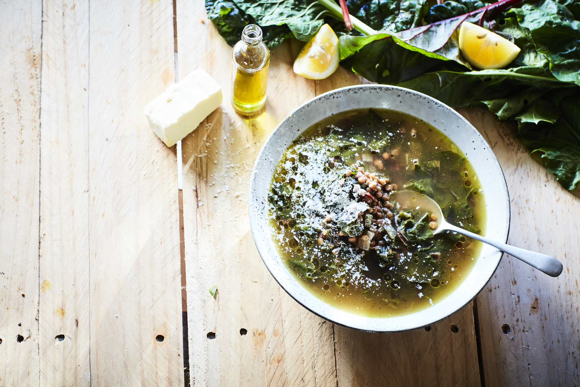 Nici’s note: Charring the greens gives this soup a wonderful smoky flavour.
