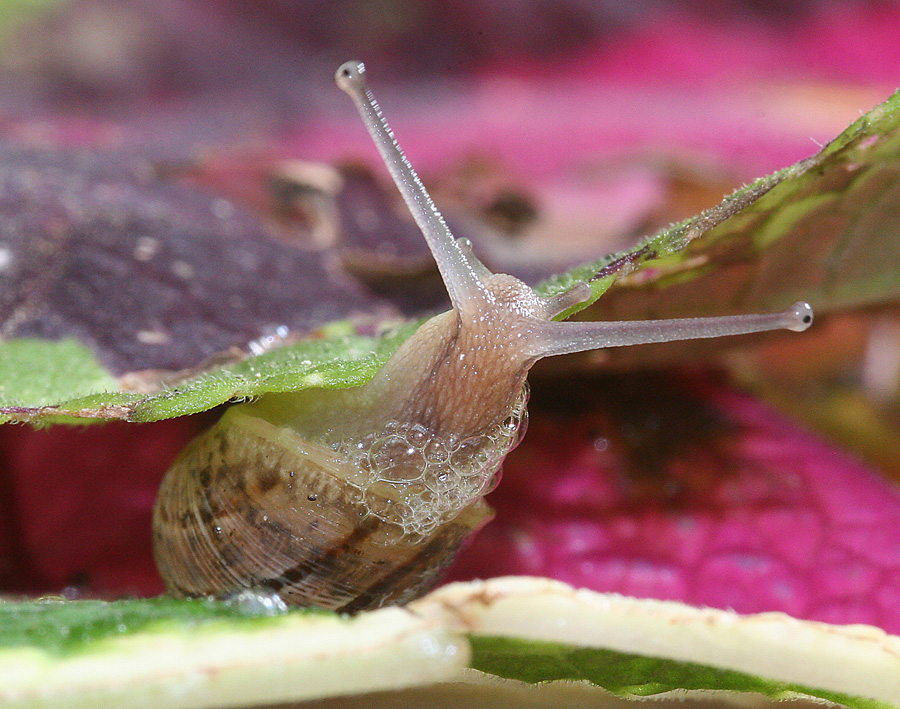 And here is one of those introduced snails that can cause a lot of damage to your garden: Cantareus Asperses, the Brown Garden Snail. It’s originally from Northern Africa and taken to France, a long, long time ago, it was introduced to NZ with European settlers. Troublesome eater of leaves etc in massive numbers; hiding under pots during the day and always more numerous than you think.