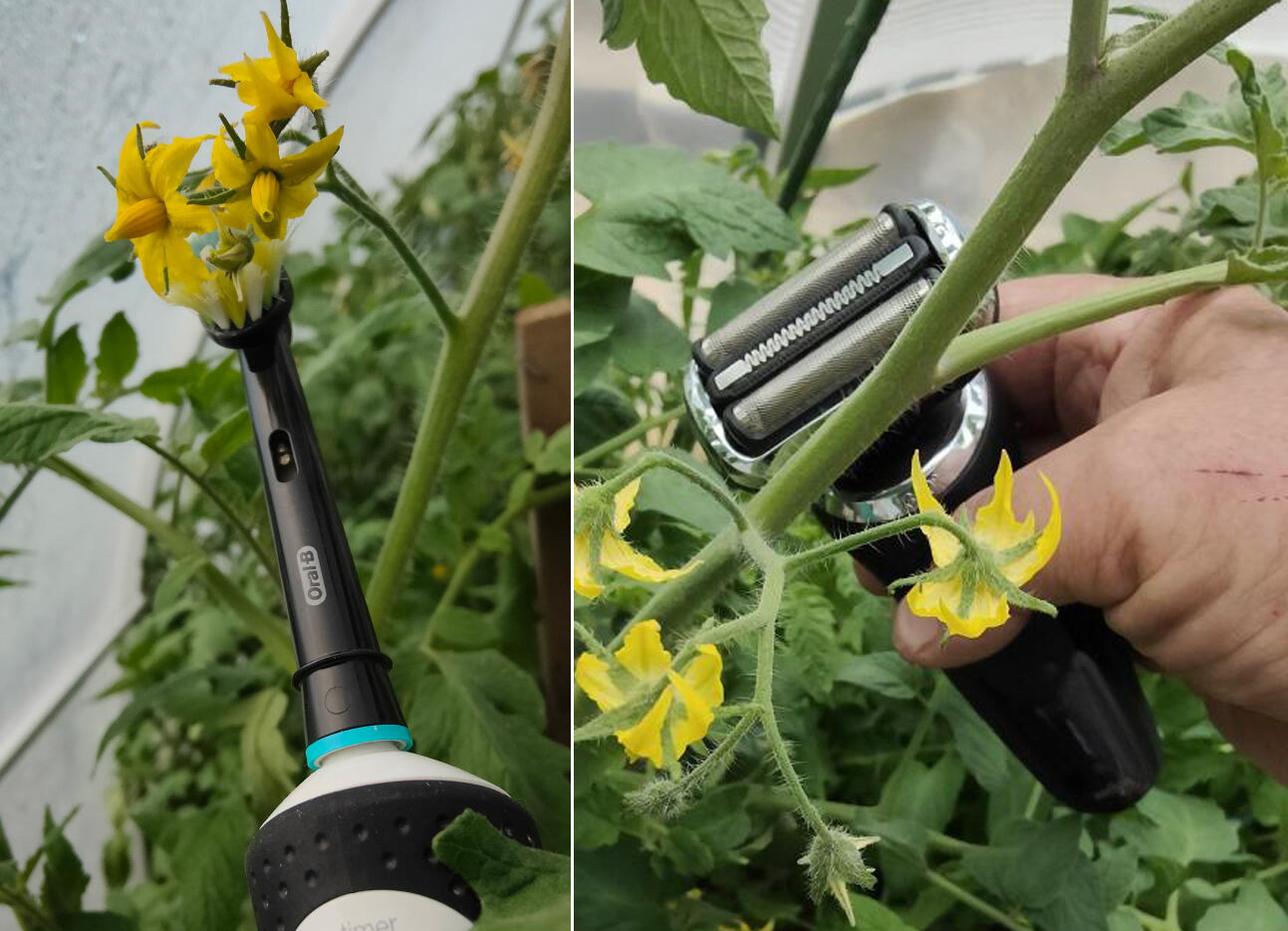 All you need is an electric Pollinator Wand that would vibrate and loosen the pollen within a few seconds – just move up-and-down the row.