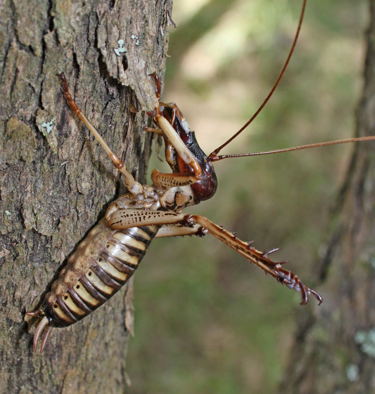After dark it’s the time for tree weta to start up their communications; A soft rasping noise that is repeated frequently by rubbing the impressive hind legs onto a raised “file” situated on the abdominal segments.