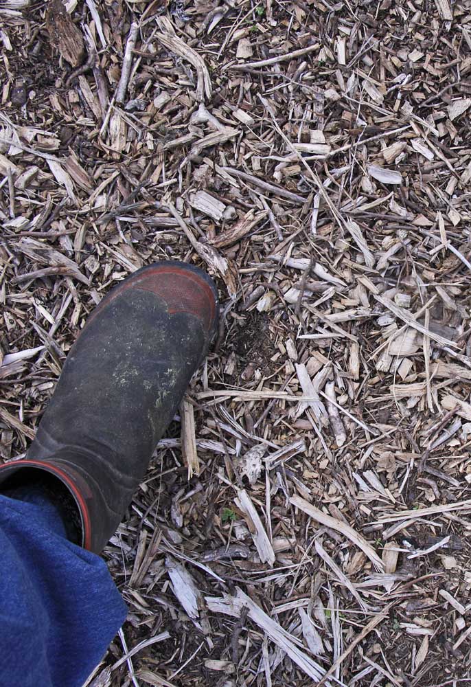 Create a thick layer of wood chips that cover the garden path. It keeps it covered in winter, and it stops a lot of weeds germinating on that path – saves a heap of weeding and keeps the surface relatively dry after winter rain.