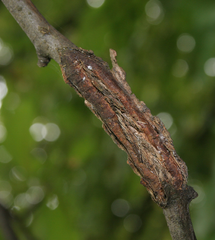 Egg-laying is very easy to spot: a characteristic “Herring bone” pattern on twigs with a thickness of a pencil.