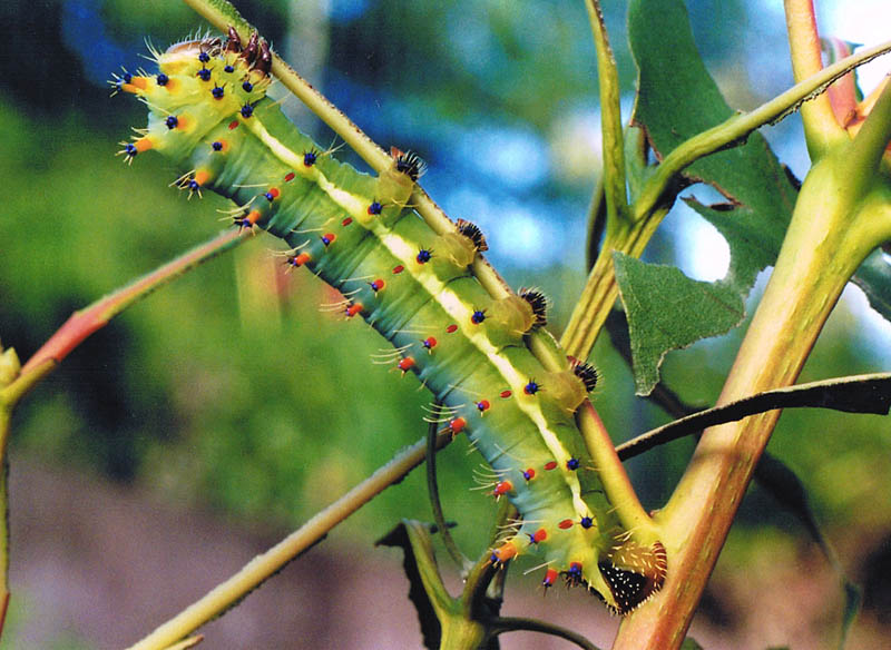 In my Gum trees I have a good colony of Aussie Silk Moths, aka gum emperor moth caterpillars – they live and feed on gum trees (but also on liquidambar).