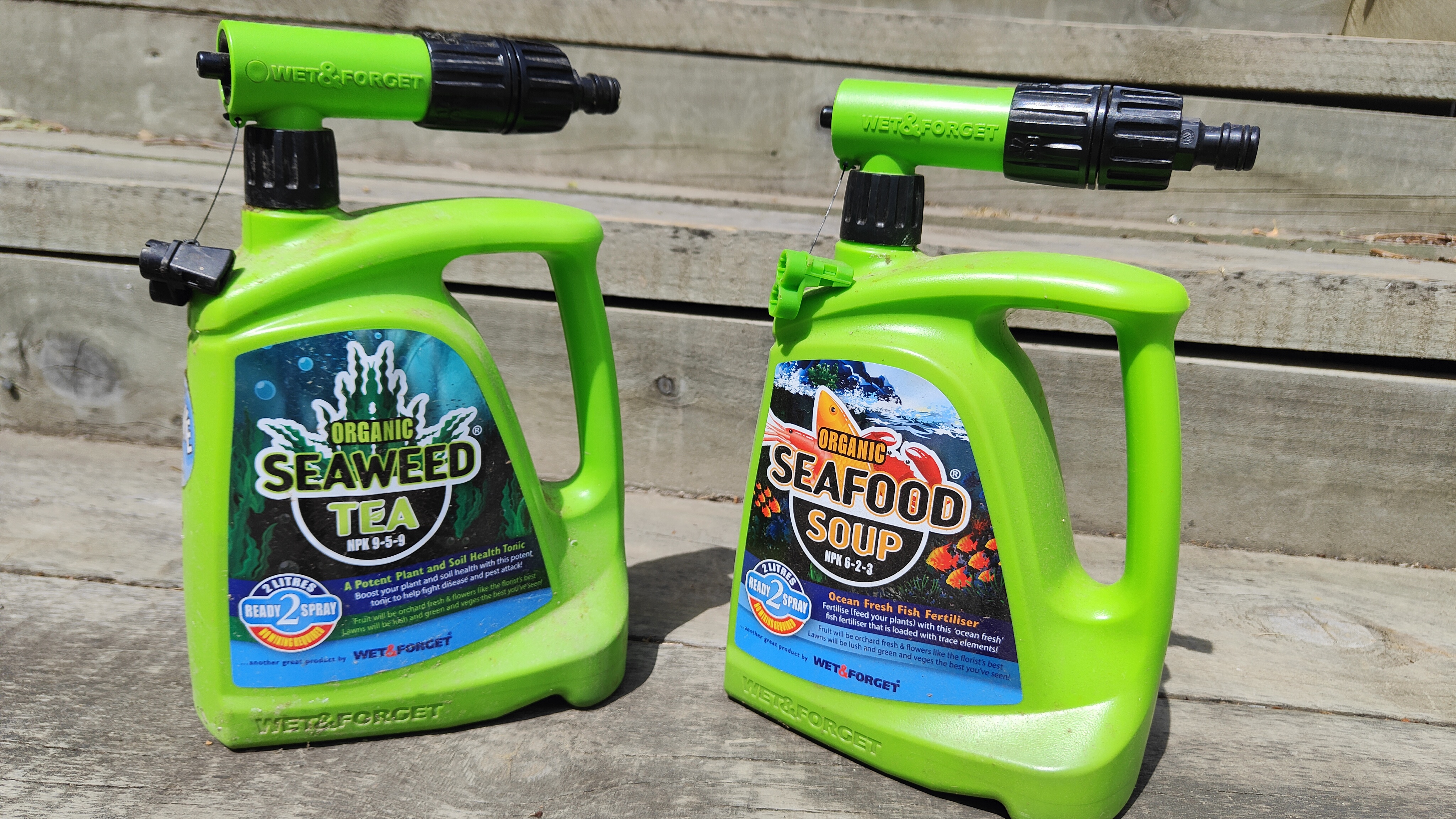 Seaweed Tea and Seafood Soup were designed to quickly fertilise lawns and large amounts of vegetables. It has this clever system of watering your plants and enriching the soil. I use the contents of Soup and Tea in watering cans – often in a very mild (or “weak”) solution. In the tunnel house I do this almost every day to water the tomatoes; with small amounts of tea or soup I add a little bit of fertiliser with every watering - works brilliantly!