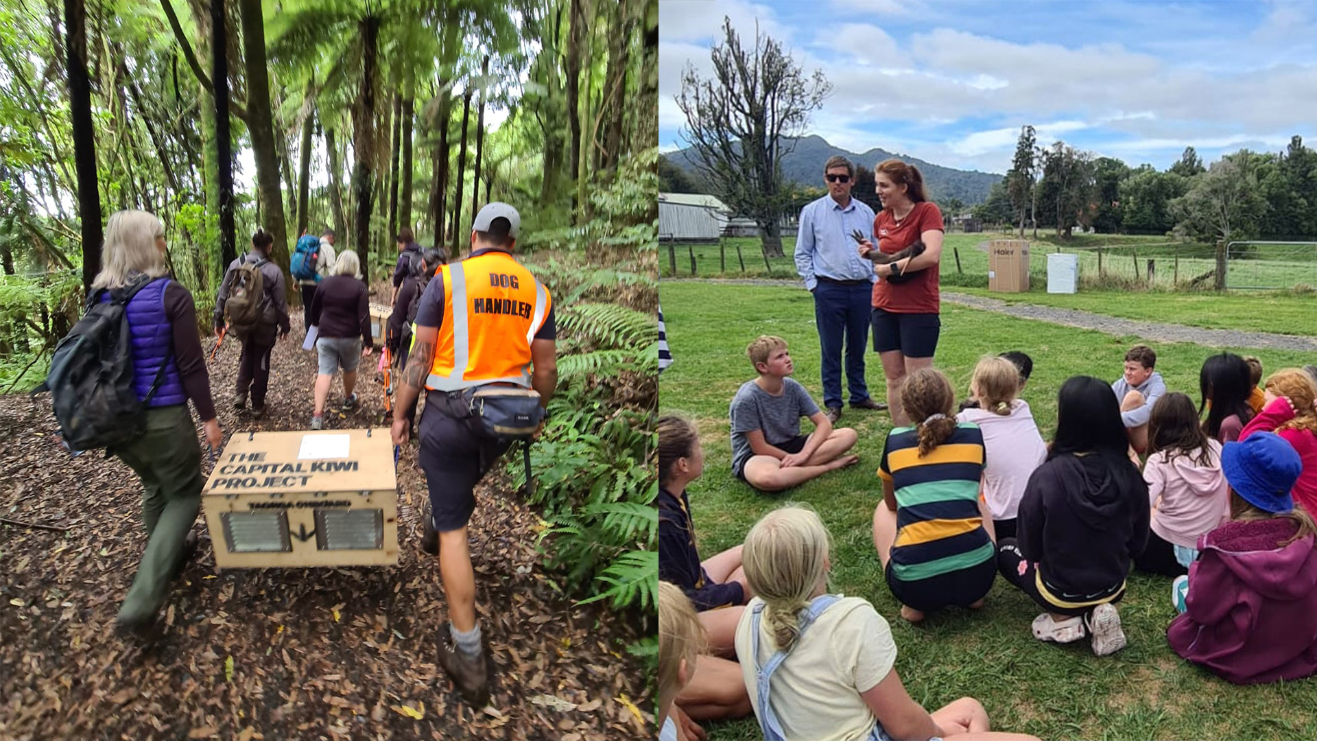 Birds are caught during the day and at night with highly trained, muzzled kiwi dogs. The birds are tagged by bands or transponders, weighed and health-checked, before kept in a smaller forest enclosure. A day or so later, the birds are transported to their final destination: a forest that is protected from predators.