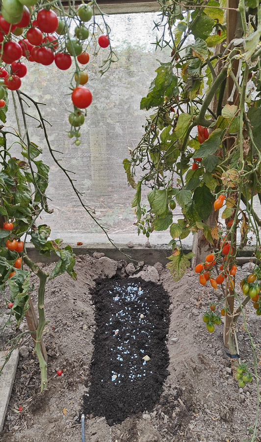 The tomatoes are still going for at least another month which gives the garlic enough time to develop leaves and do some photosynthesis.