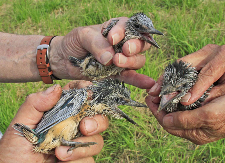 The birds are quite clever in building their nest in a vertical (clay) bank, rotting logs, etc, where they’ll raise three to five young ones in the space of just-under a month.