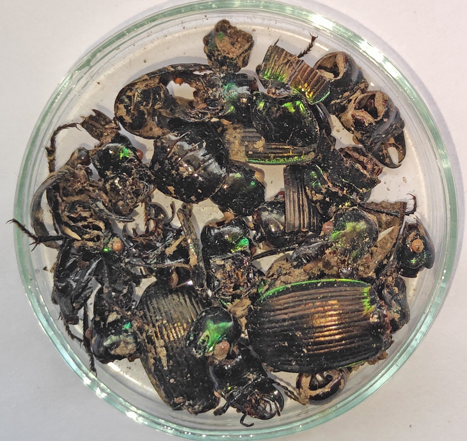 One species that was very common in the Kingfisher’s pellets were the remains of the Alexander Beetle (Megadromus antarcticus), a large species with a fabulous iridescent green shine on its body.