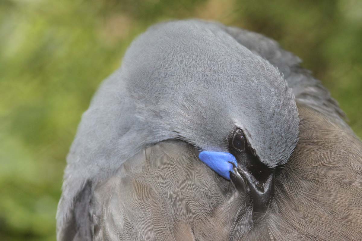 It hops through the aviary (Kokako glide, rather than fly) and shows great agility, just like its mates in the wild forests.