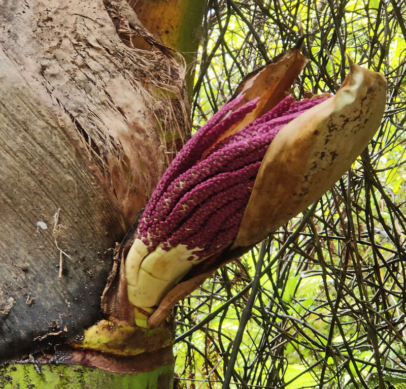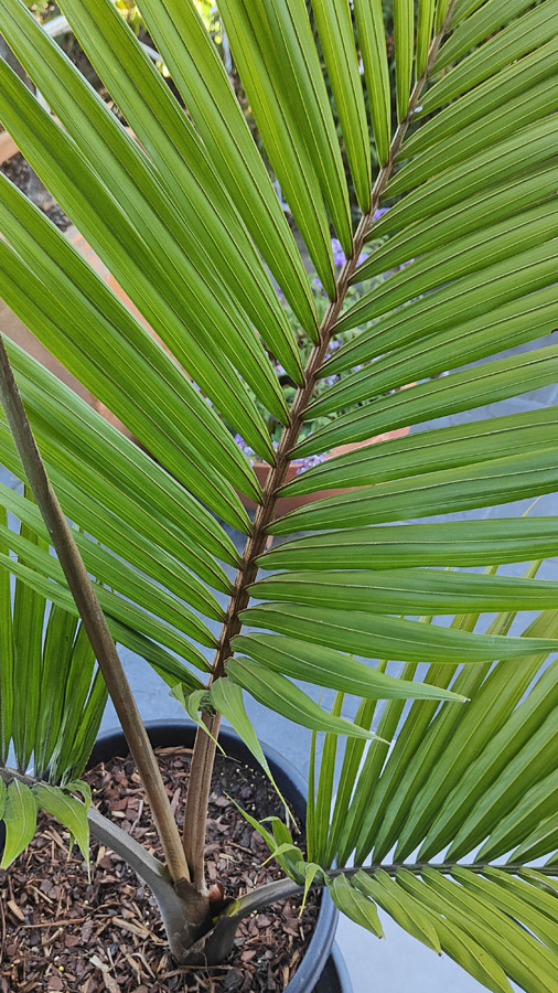 The second Native species in New Zealand occurs in Raoul Island (Kermadec Islands group). Its scientific name is Rhopalostylis baueri. This is a gorgeous form with large leaves and beautiful drooping habits. They are great to grow in large containers. I found some of these baueri (often called Rhopalostylis baueri var cheesemanii) as Christmas present for my local gardener at home.