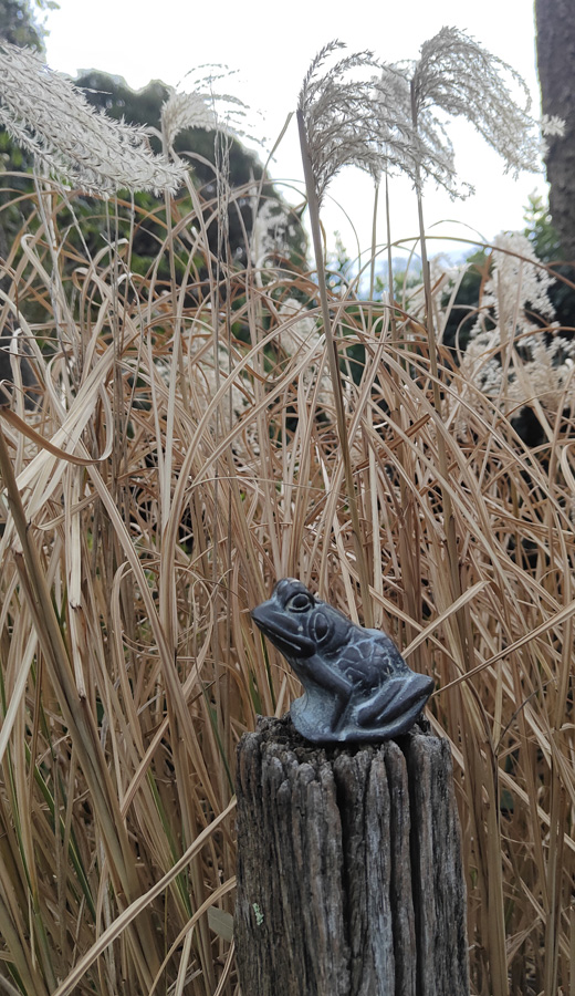 Miscanthus chinensis, still waving in the wind. A froglet sitting quietly.