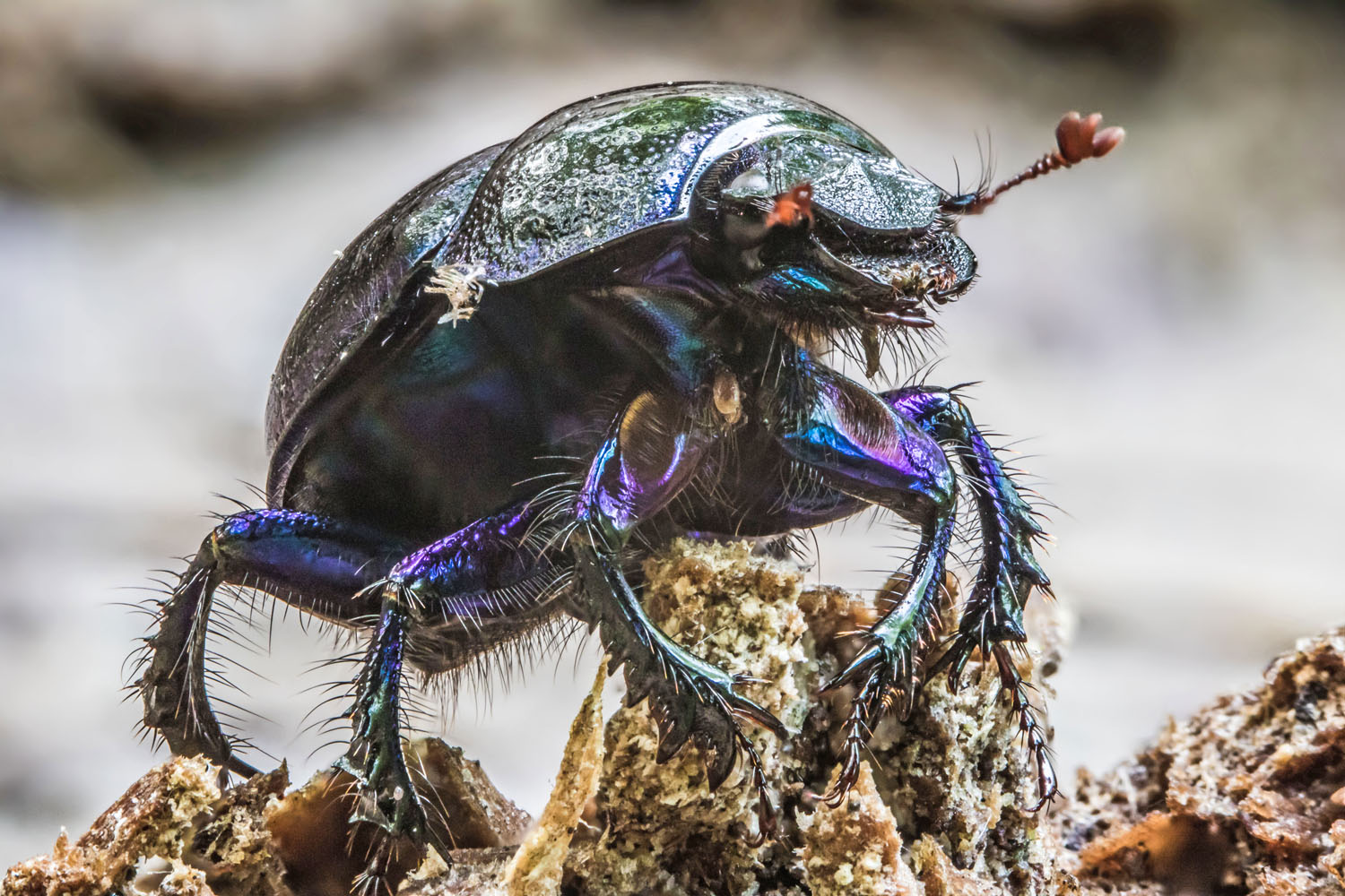 Geotrupes spiniger – the Paua dungbeetle, introduced in New Zealand to put dung back into the soil. It not only puts fertiliser where it is most efficient but also returns carbon back into the soil where it is most needed (rather than in the air!).