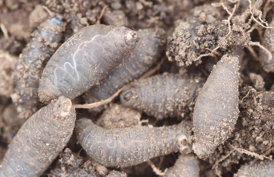 These insects are the larvae and pupae of Crane Flies. Soil cleaning and dead wood in the soil – recyclers maintaining soil health.