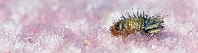 Little larvae will start gnawing at the keratin (wool), especially on the underside of the carpet backing, so that the woollen strands become loose and are easily sucked up the vacuum cleaner.