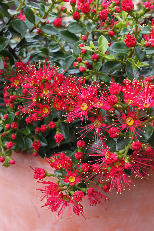 If you’ve had a look at the plants in your local botanic Garden, you’ll find what will grow well at your place. In many frost-free areas I’m thinking of Ngutu Kaka (Kaka Beak). This is a native plant that will look red and just amazing. It’s one of those plants I have always wanted to grow, simply because it looks stunning with those flowers, and it attracts the nectivorous birds.
