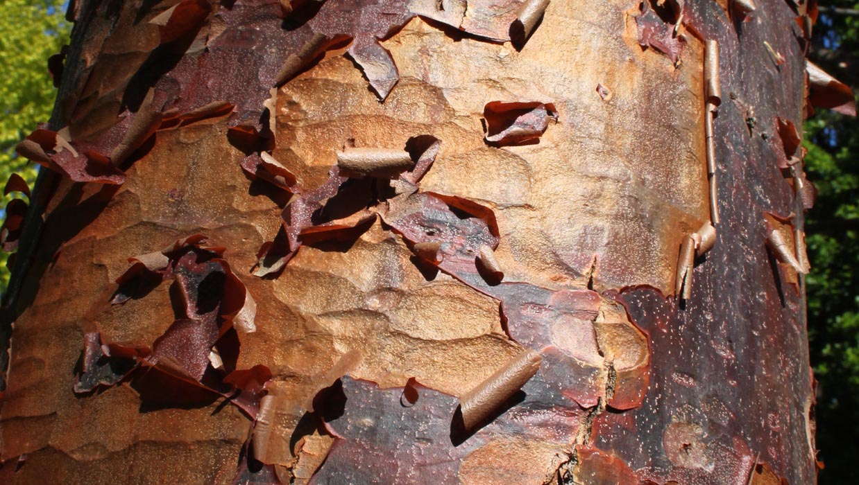 The peeling cinnamon-coloured bark is what gives me hope: hope for a speedy springtime and hope that some young gardeners will see the beauty of back-lit leaves from a low-angled sun.