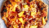 Ham and pineapple and chunky tomato pizza Cook time: 10 minutes Prep time: 10 minutes Serves: 6 200 ml warm water 9 gm dried yeast (1 pkt) 9 gm sugar 120...