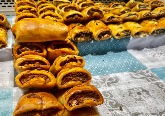 Place 2-3 tbsp of mixture into the centre of the short crust, top with a touch of cheese, brush the outside edge of pastry with egg wash and fold over the pastry. Crimp the edges to seal and place onto a baking. Brush with egg wash before pacing into the oven for 15 minutes.