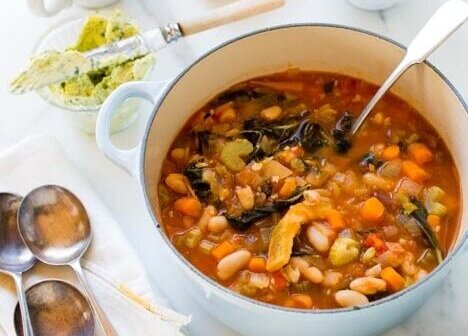 Serve the piping hot soup with freshly toasted bread, ripped into pieces.