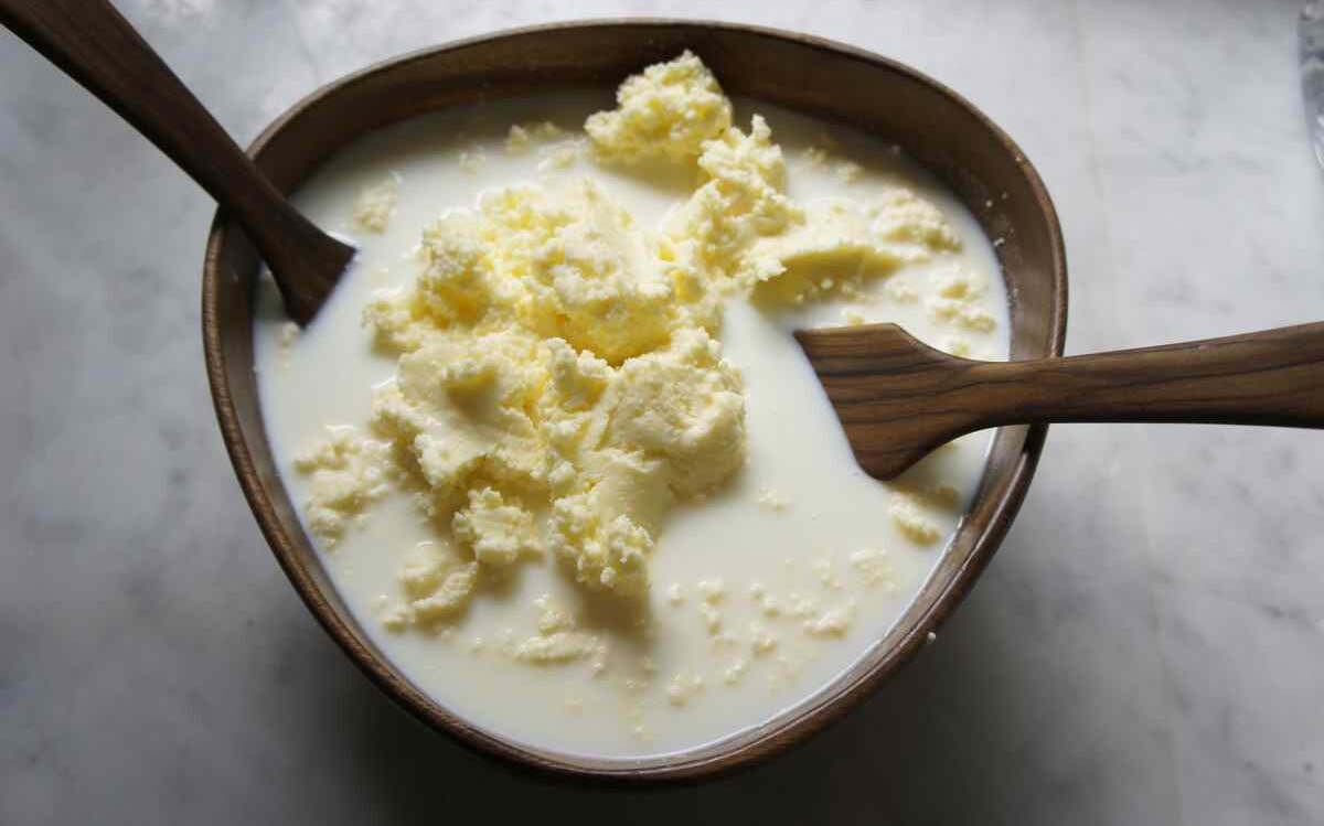 Stop the mixer and push the cream back down into the centre. Remix on medium speed for another 3 minutes, what you are looking for is the fat of the cream to totally separate and become solid.