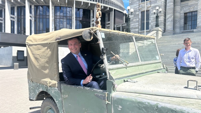 The controversy continued on Monday as Seymour attempted to drive a Land Rover up Parliament's steps, before being yelled at by a Parliamentary security guard.