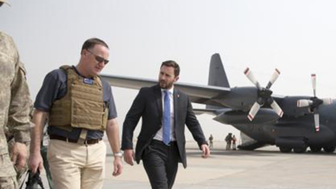 Teflon John Key, in his helmet and body armour, reviewed his troops who're at Camp Taji in the Iraqi desert, training Iraqi volunteers to fight the Islamic scourge.