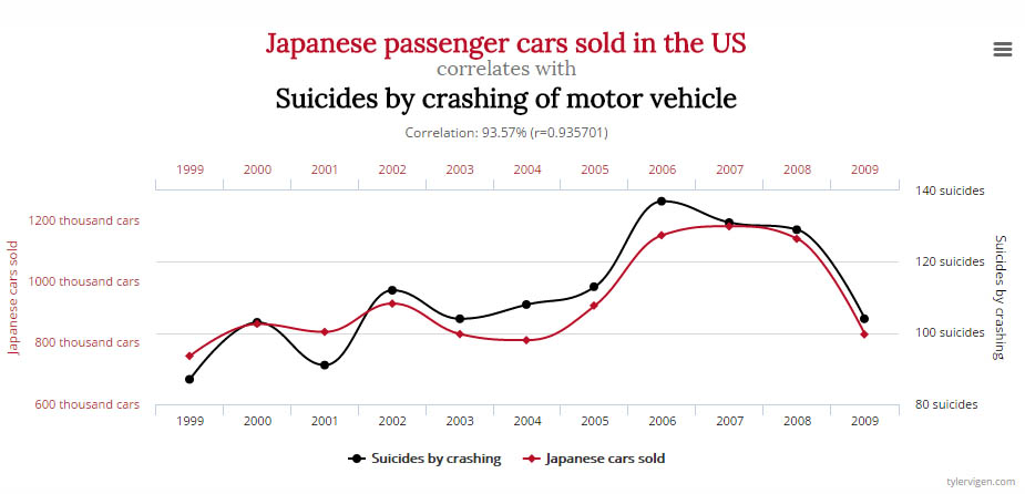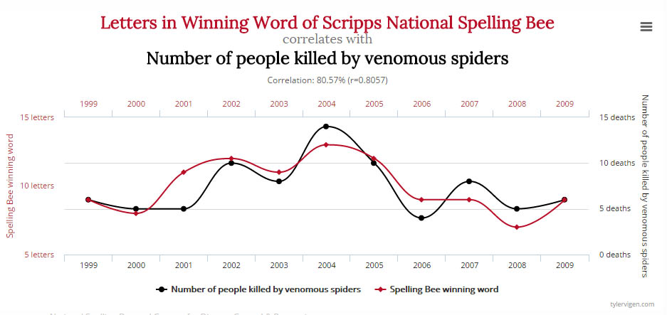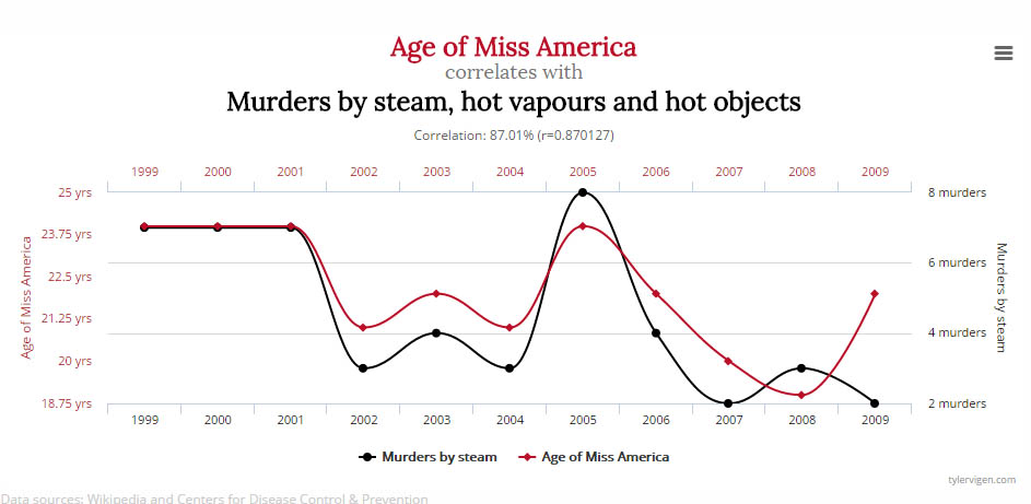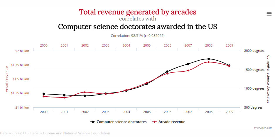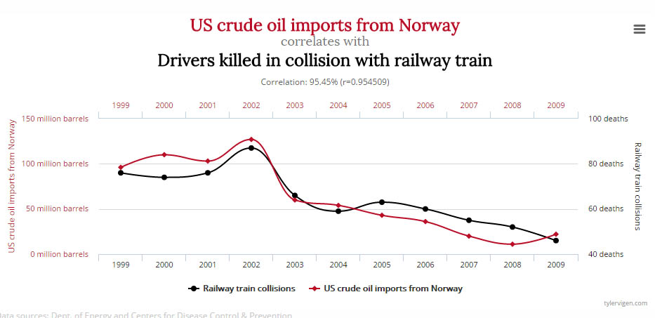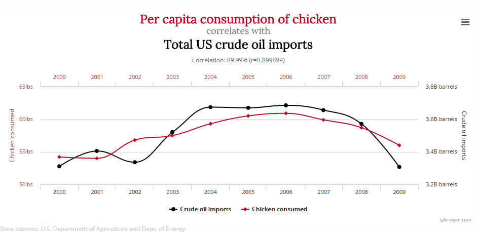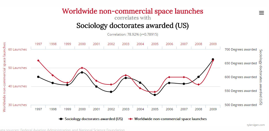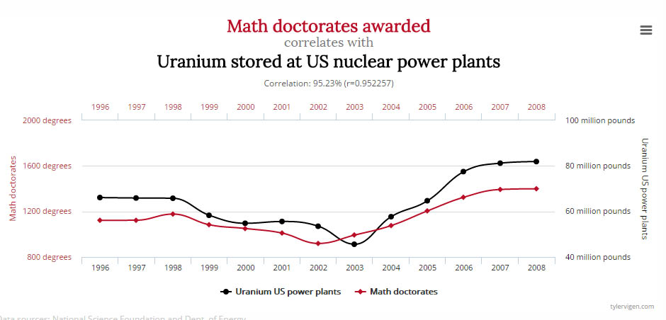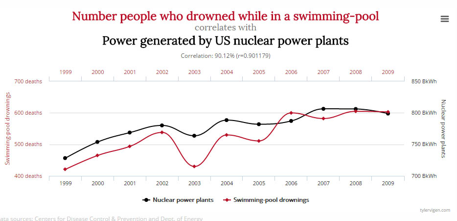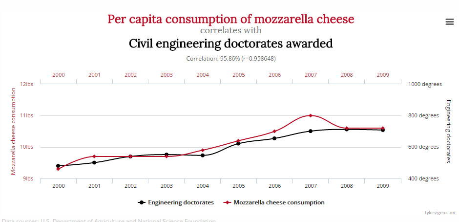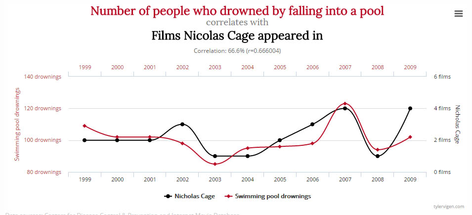 A set of photos for stats junkies, that shows that sometimes even things that appear to correlate don't necessarily have anything to do with each other. Â (Via Tyler Vigen)