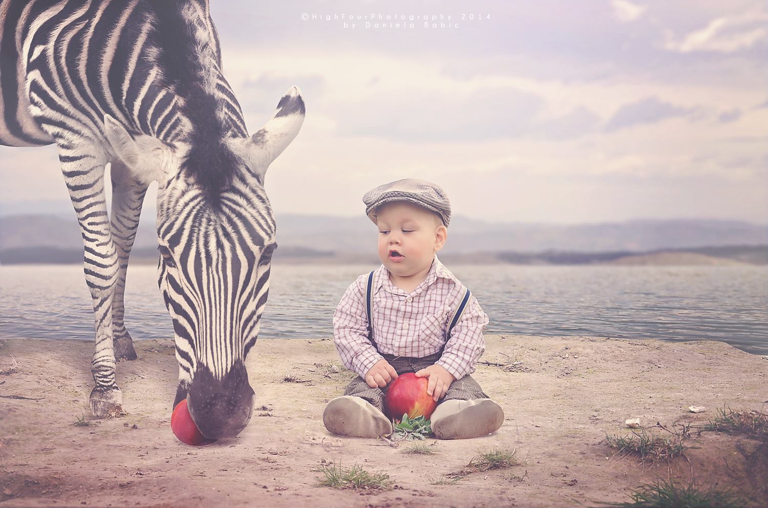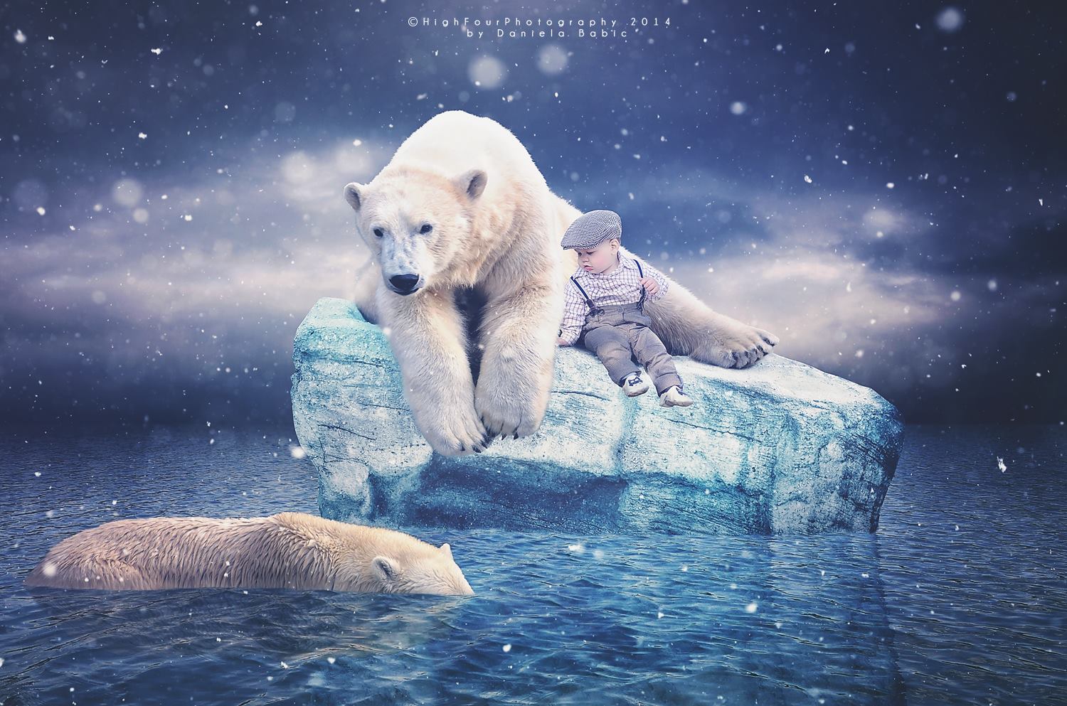 Daniela Babic from Vienna, Austria has taken photos of her 10-month-old son Theodore and photoshopped him into some spectacular animal encounters. She started by putting him in a photo with a polar bear and since then she's sent him on many more adventures.