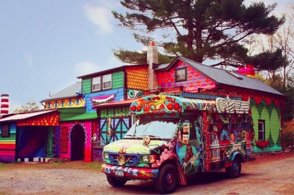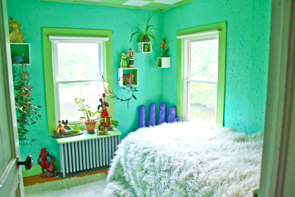 In 2009, Kat and her partner, Mason Brown, began working on renovating the house that would become known as Calico, or "the rainbow house", with psychedelic murals outside and whimsical, technicolor dream rooms indoors. The entire house was made on a budget with recycled materials and plenty of DIY elbow grease