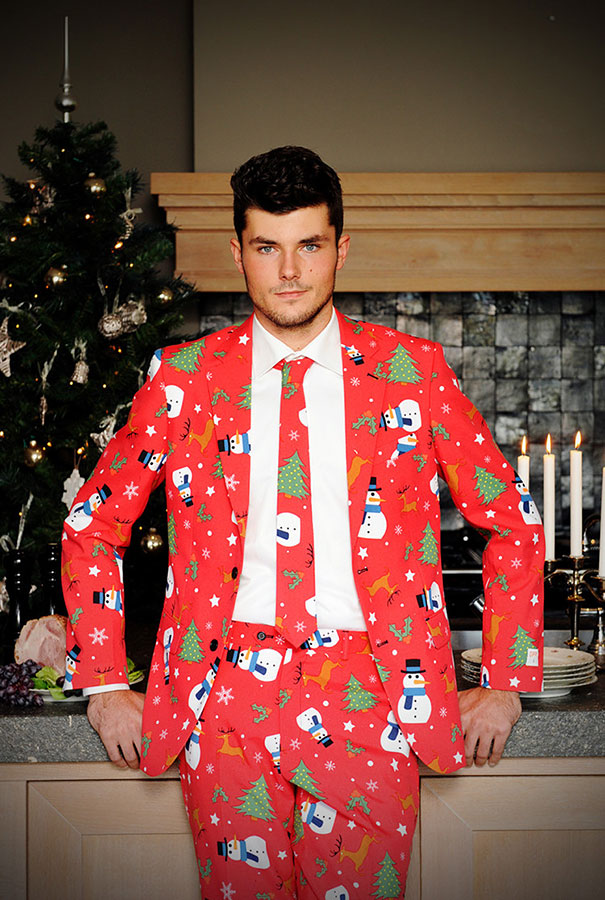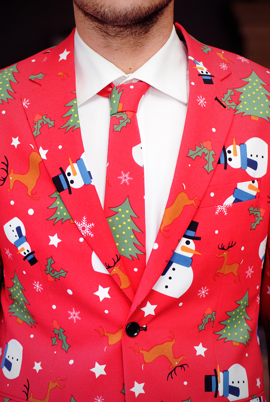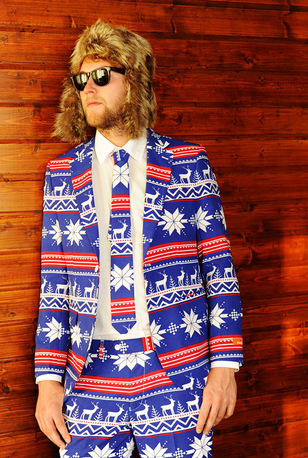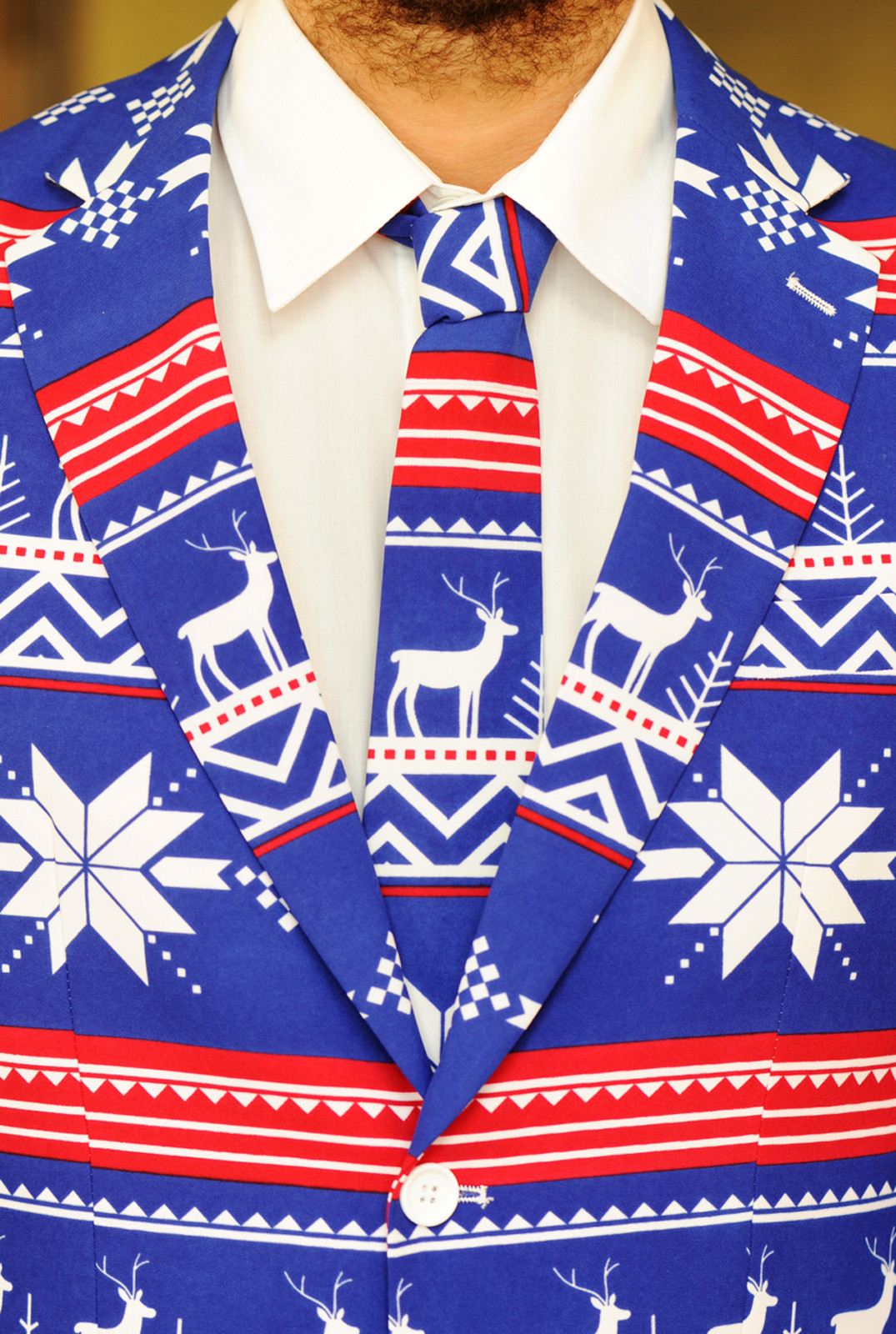 How would you feel if you got one of these in your Christmas stocking? Take a look at these 'Ugly Christmas Sweater Suits' Source: Shinesty.com