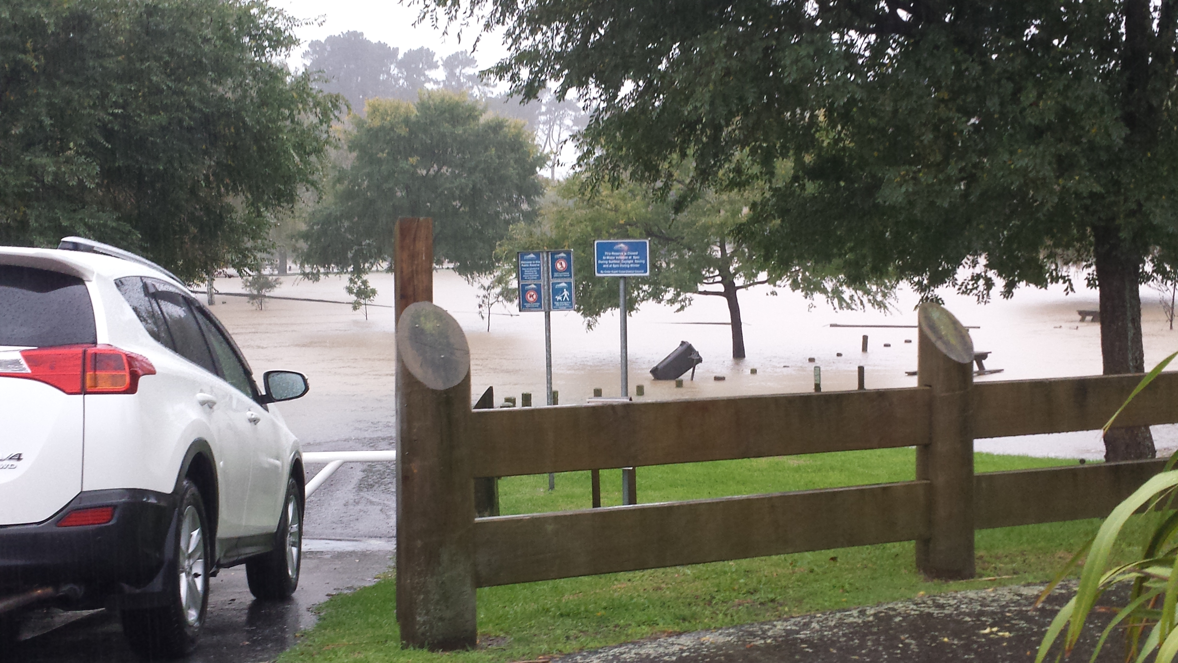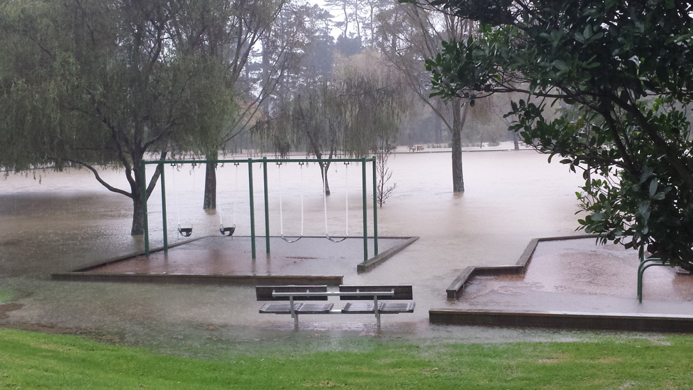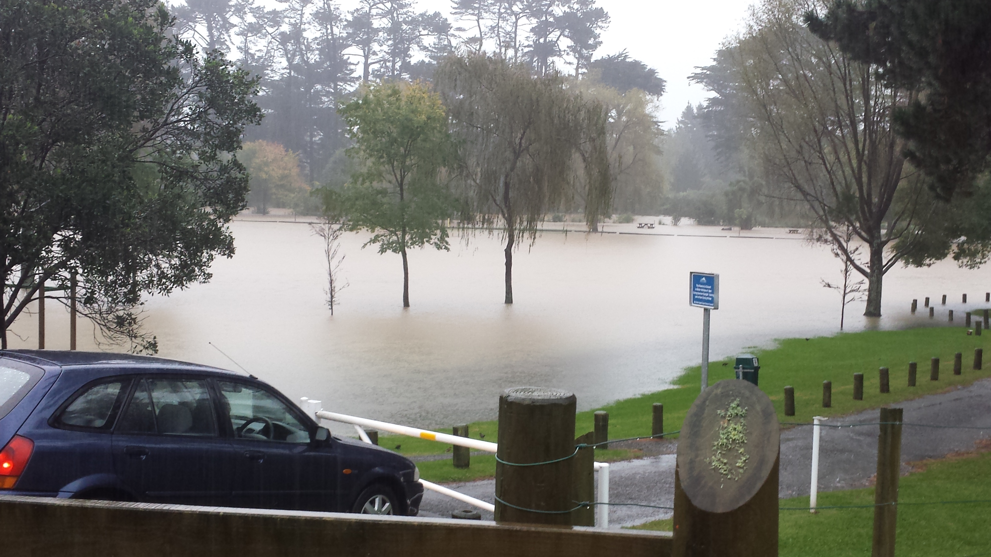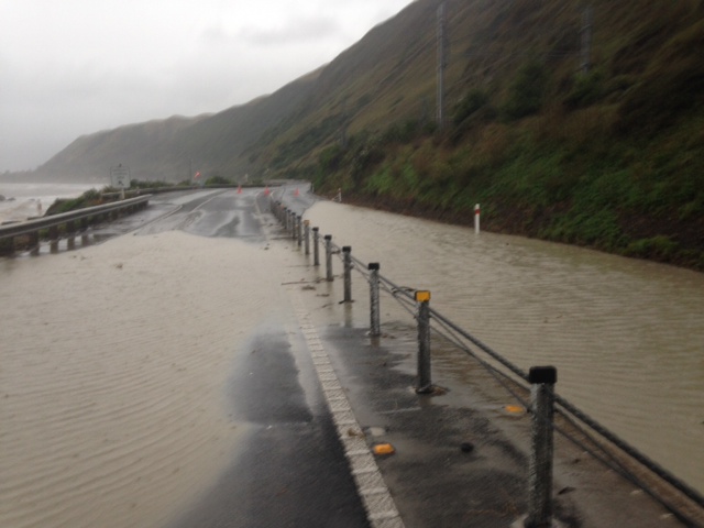Wellington has been lashed by wild weather this morning, and flooding has affected the Kapiti Coast in particular. Slips have closed roads, parks have been inundated with water, and the locals are boating through the streets.