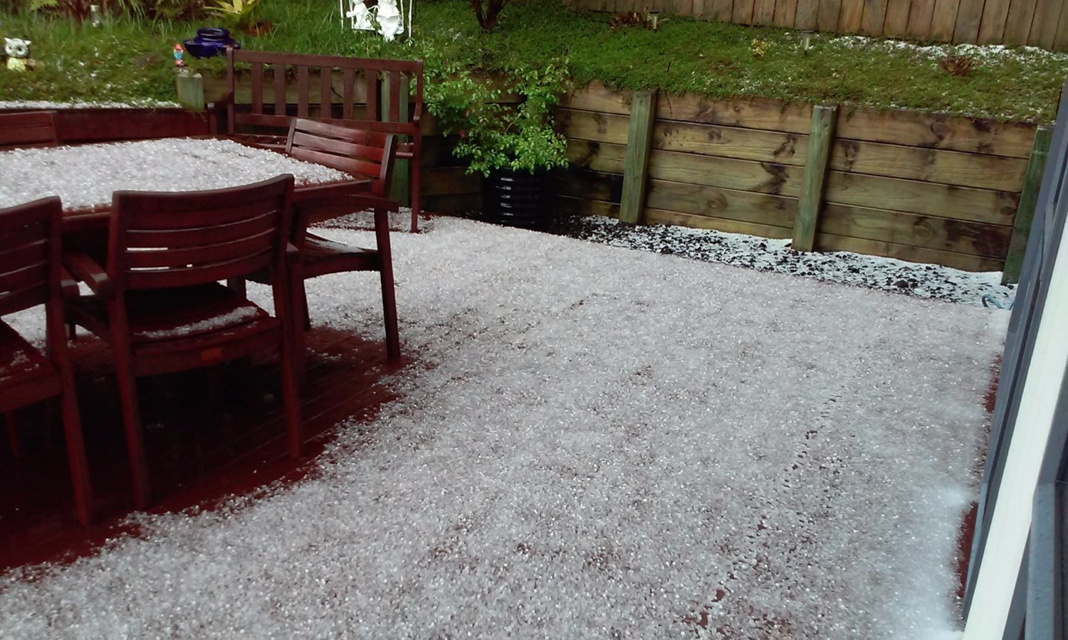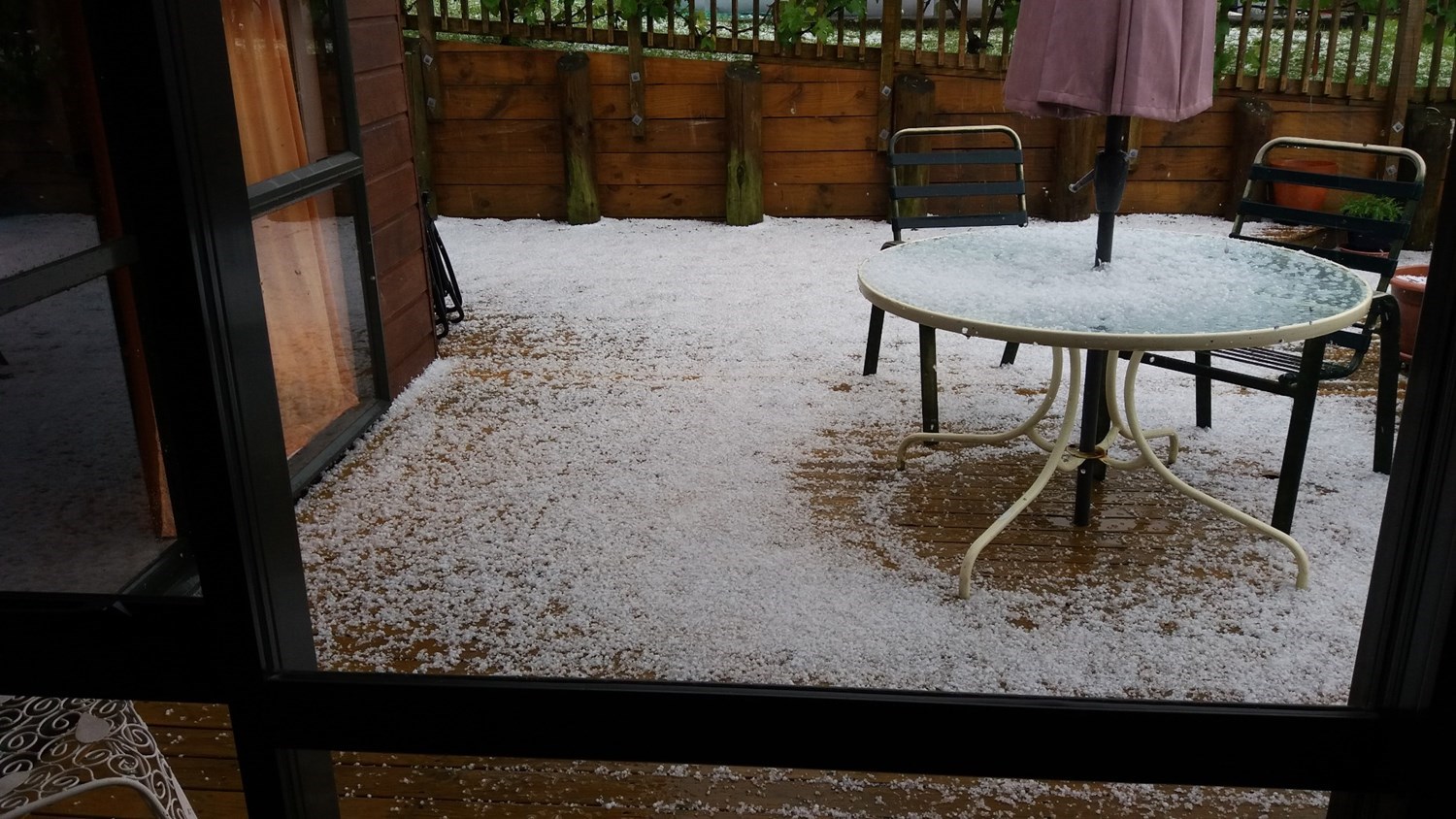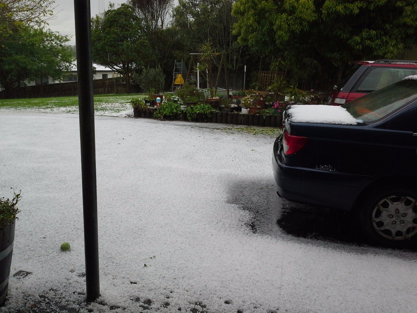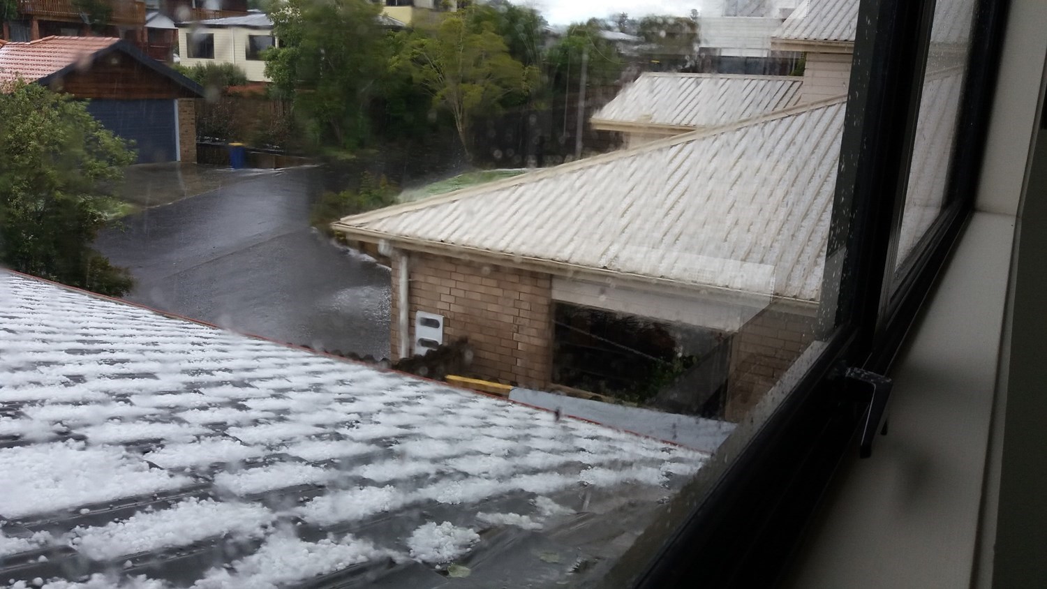 Other residents describe slippery roads, surface flooding and hail of Biblical proportions.