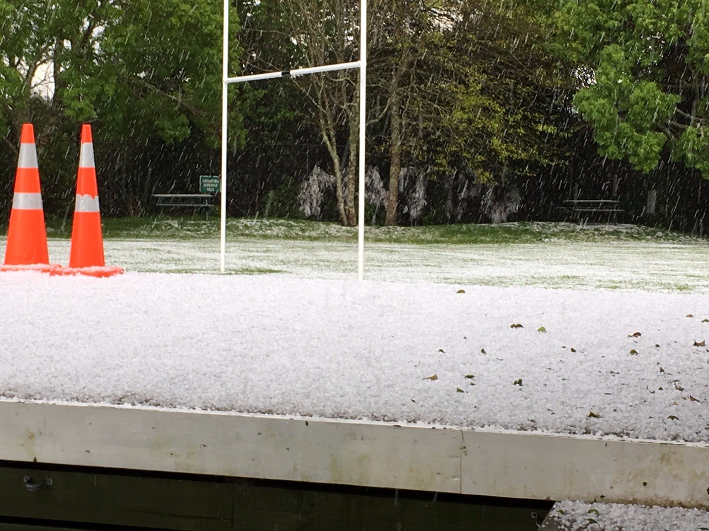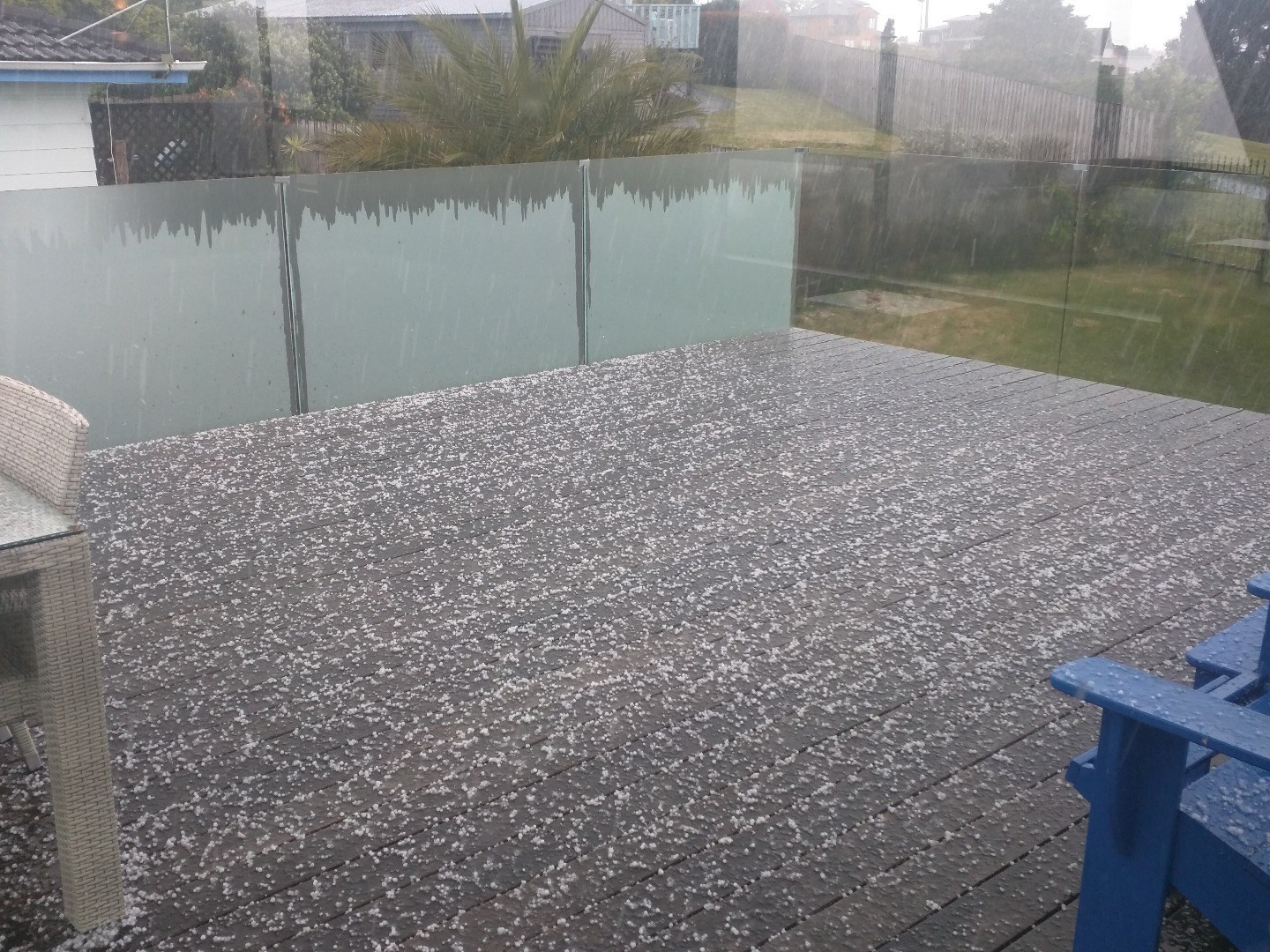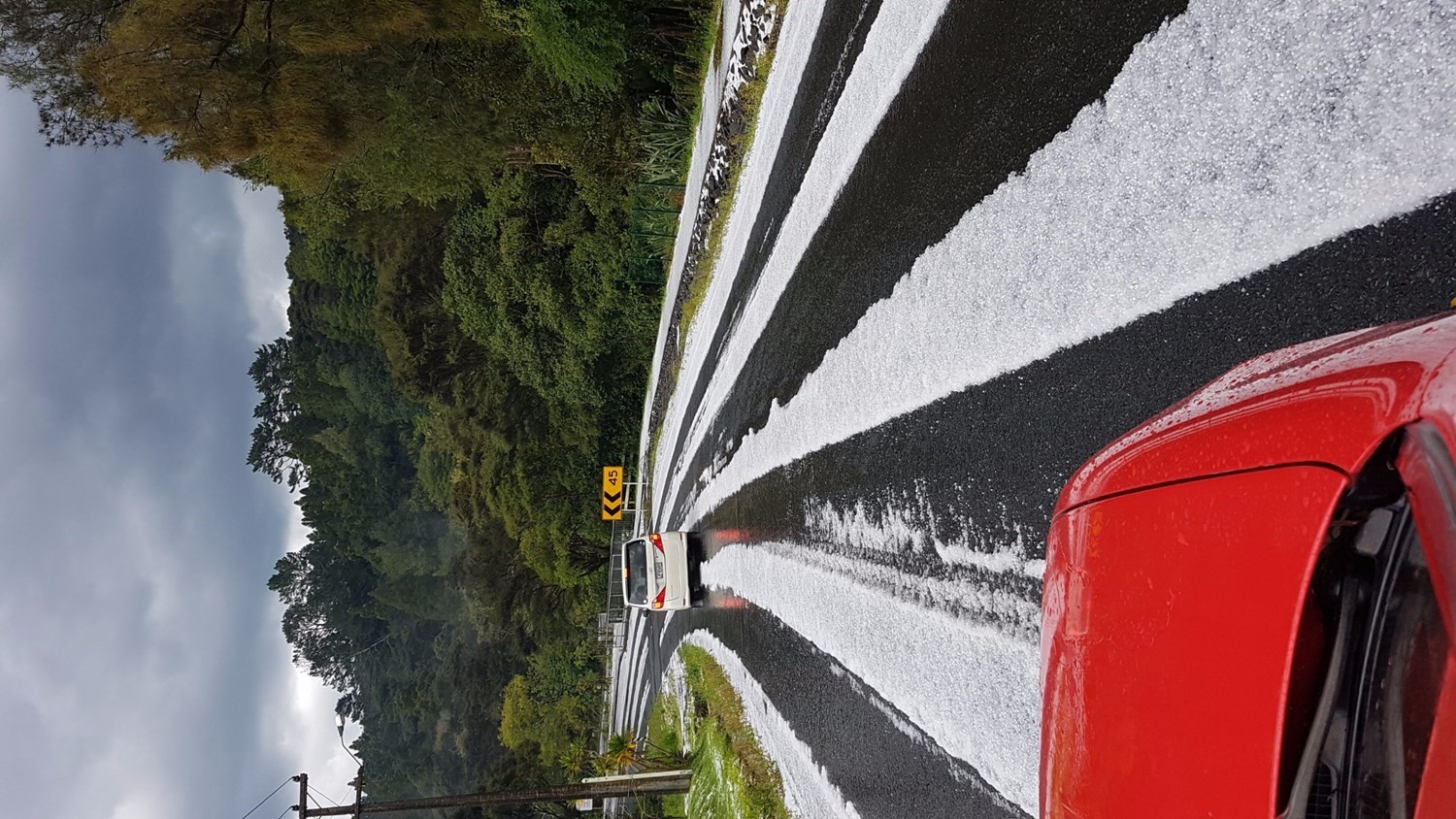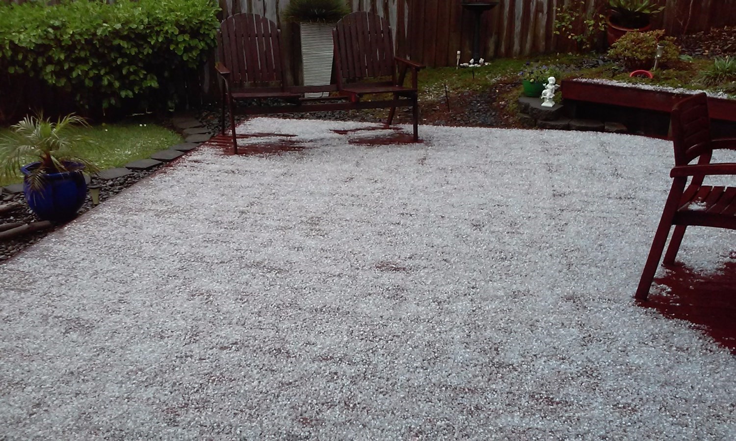 Other residents describe slippery roads, surface flooding and hail of Biblical proportions.