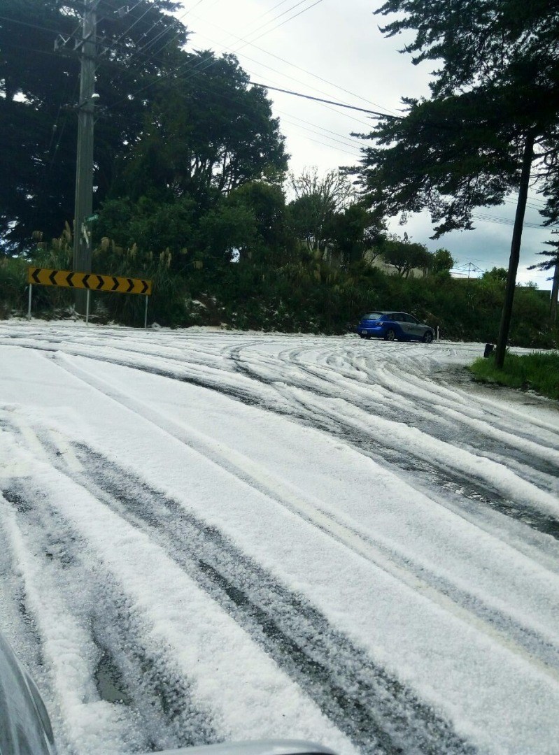 Hail the size of 20 cent coins has been pelting parts of west Auckland, minutes after the city was enjoying sunny skies.