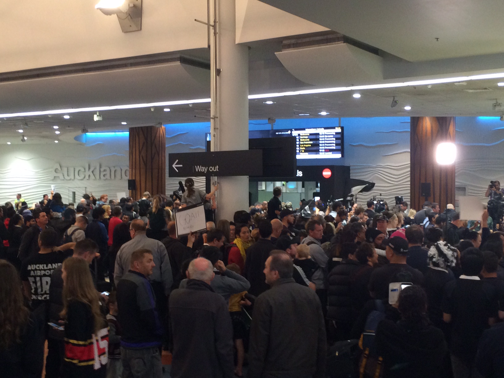 Huge crowds have turned out at Auckland Airport to welcome the World Champion All Blacks home.  Were you there? Send your photos to [email protected]   (Photos: Facebook, Twitter, Supplied)