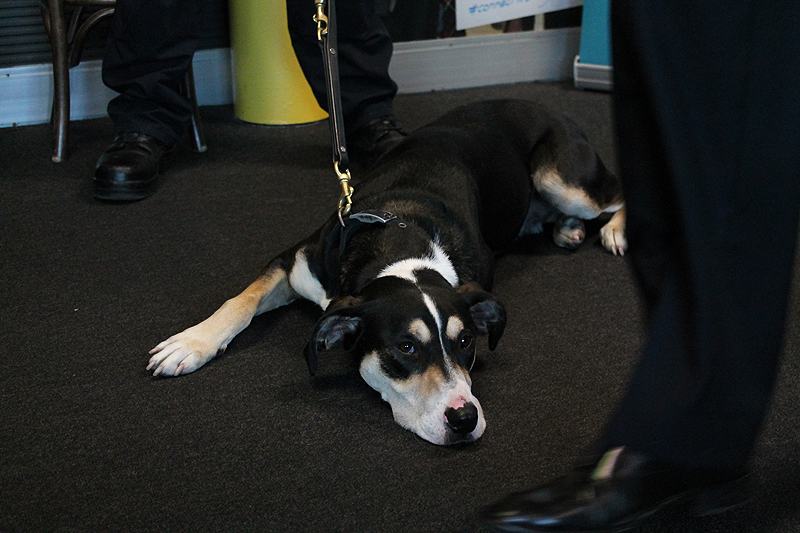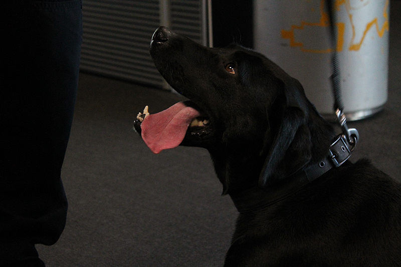"It actually says on her card that sometimes she embarrasses her handler by not sitting still when she's supposed to."