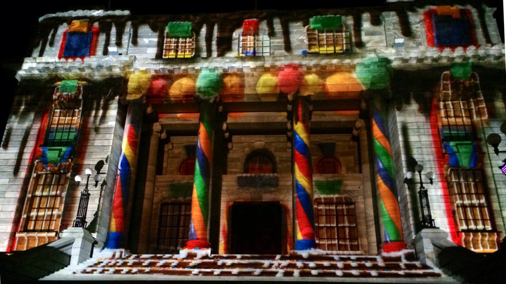 Party goers were then given a spectacular light show that lit up the old parliament building depicting a history of the city.