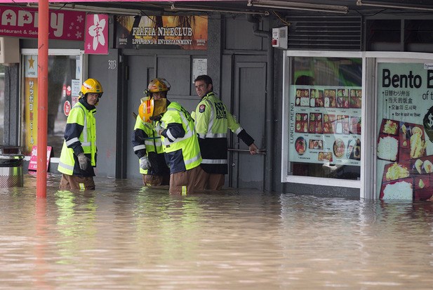Ten people were rescued from flooded shops in New Lynn and the Bunnings store was evacuated after its floor was raised 300mm.
