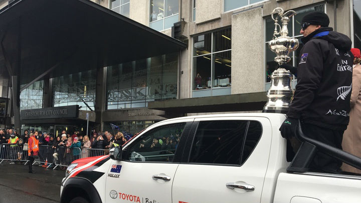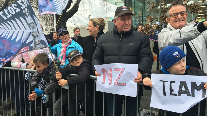 The cold and wet hasn't stopped the crowd turning up to get a glimpse of the America's Cup in Christchurch. FULL STORY HERE