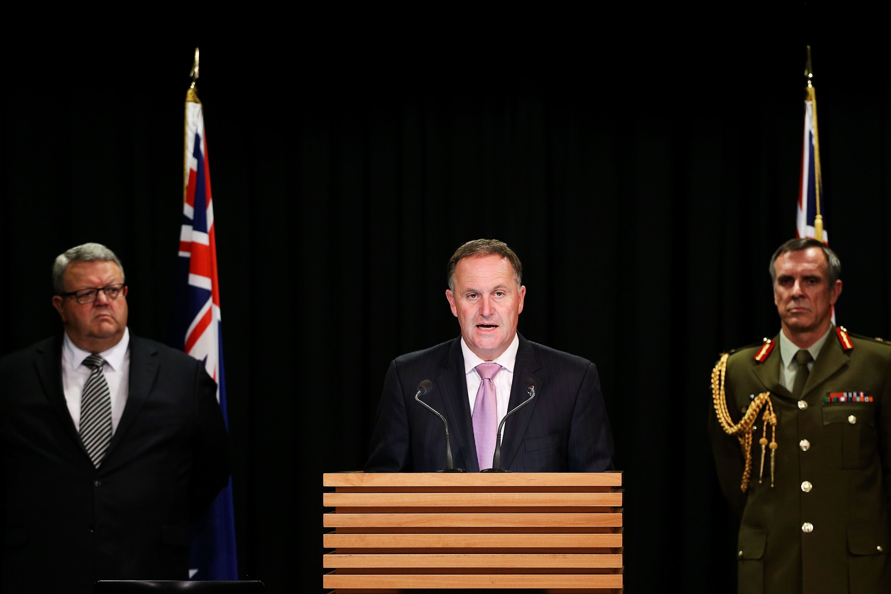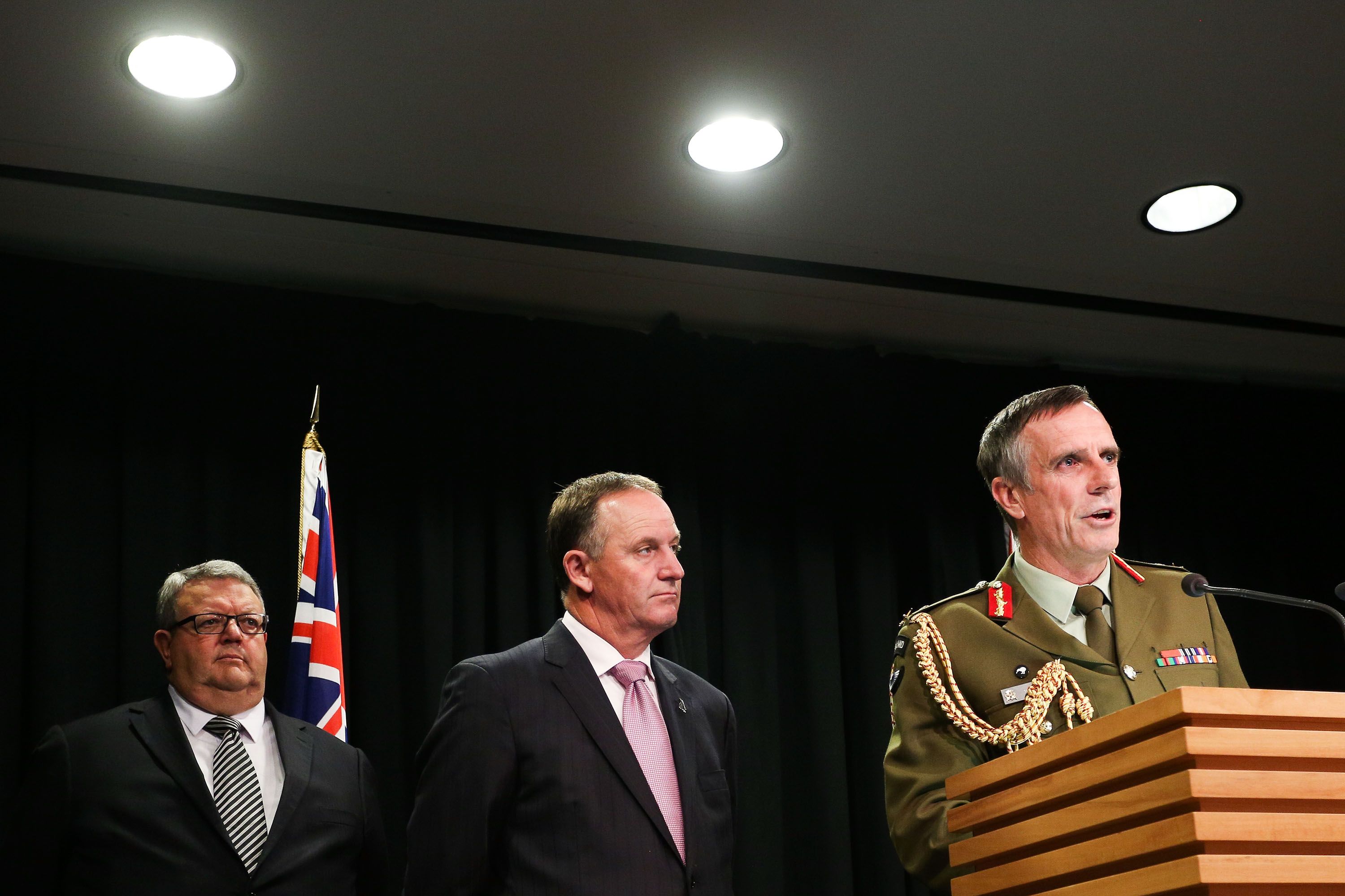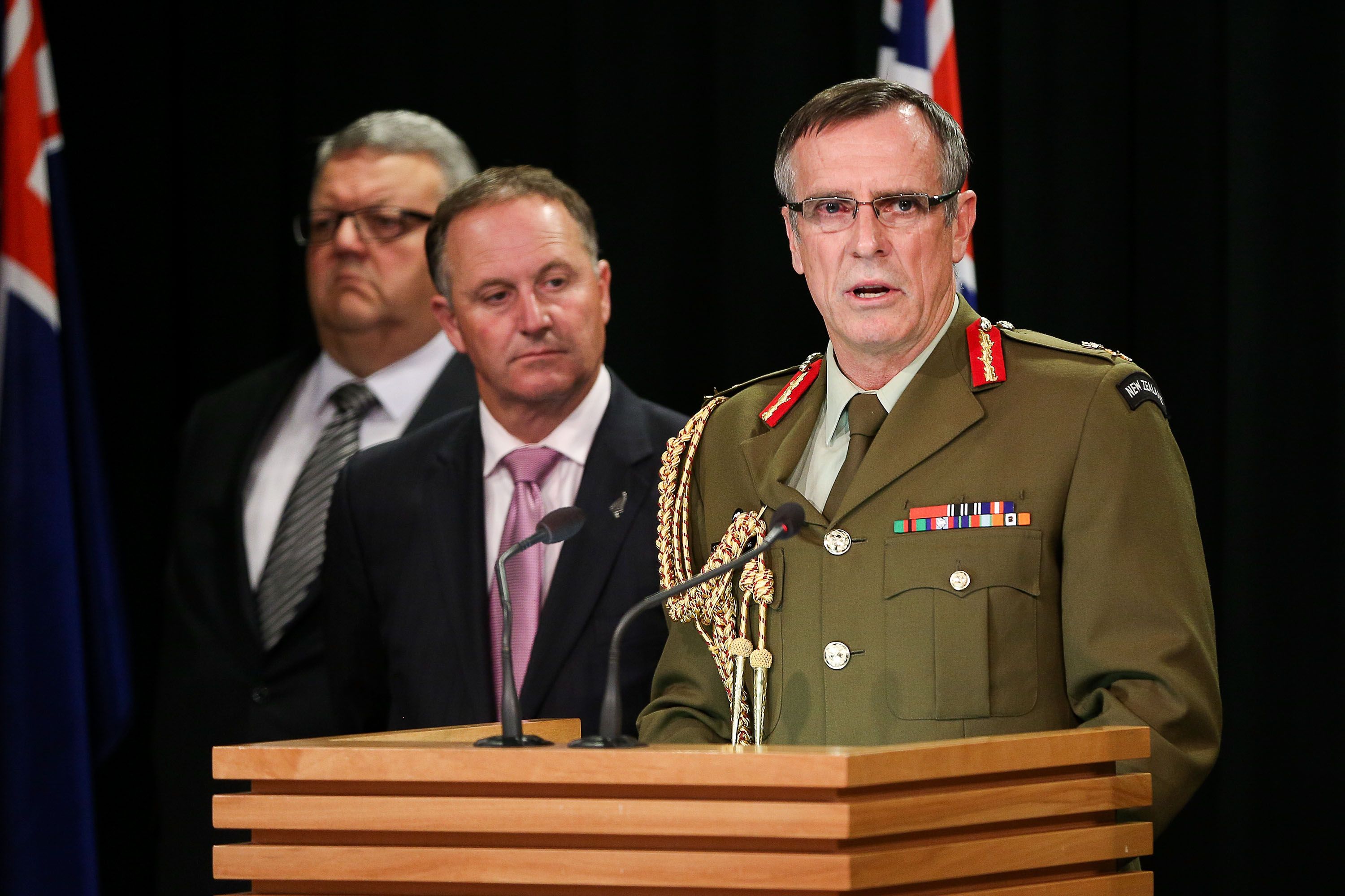 Prime Minister John Key, Defence Minister Gerry Brownlee and Chief of the Defence Force, Lieutenant General Tim Keating hold a joint media conference to outline New Zealand's upcoming role in Iraq