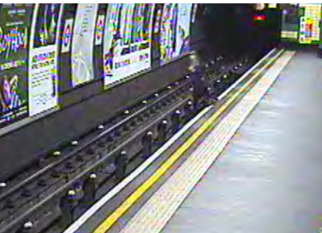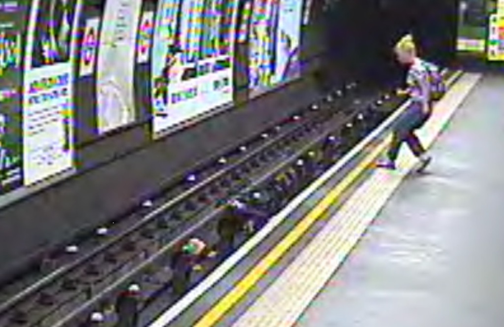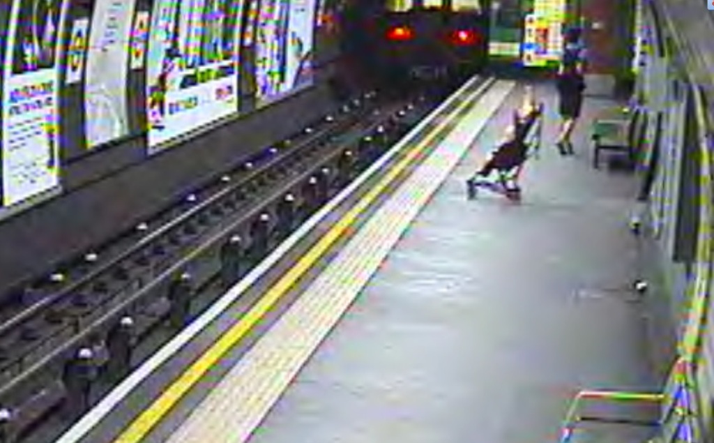 The British Transport Police have released CCTV images of the terrifying moment a toddler's stroller is blown onto London subway tracks. The child's mother then ran onto the tracks to retrieve the pushchair and small child seconds before a train pulled in to the platform.