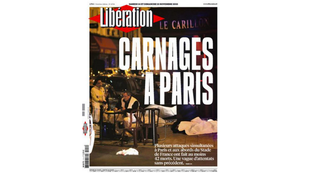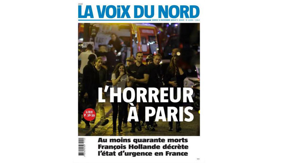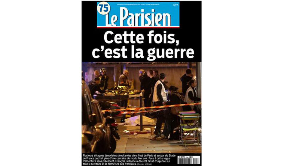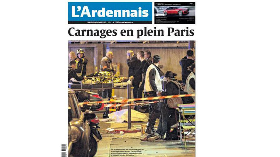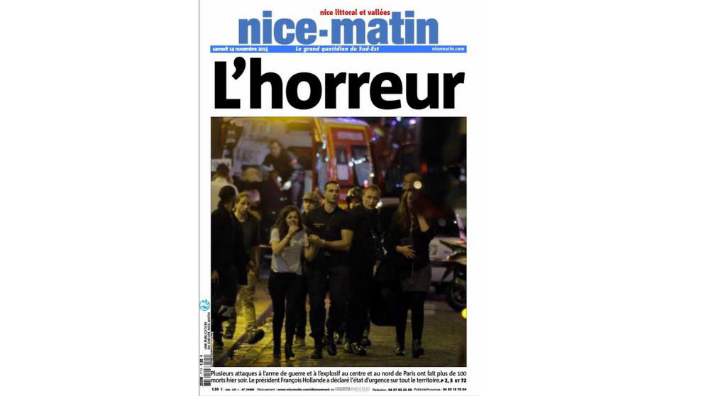 The front pages that France woke up to after a night of attacks on Paris killing at least 153 and injuring many more.