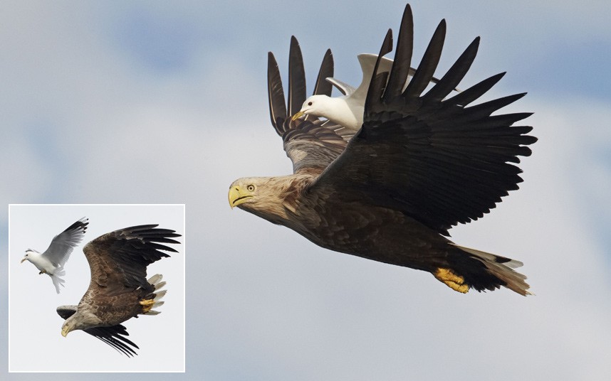 The above picture was shared by the US Department of the Interior showing a red-winged blackbird appearing to hitch a ride on the back of a red-tailed hawk - just the latest in a series of incredible and surreal pictures capturing animals hitchhiking on other animals. We collected the best.Â