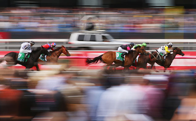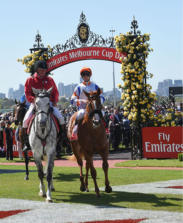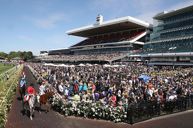 The sun is shining on a beautiful Spring morning as racegoers make their way to Flemington for the Melbourne Cup.