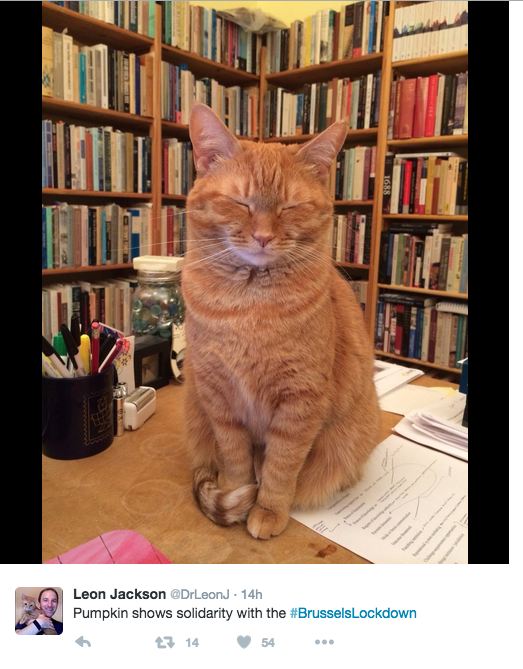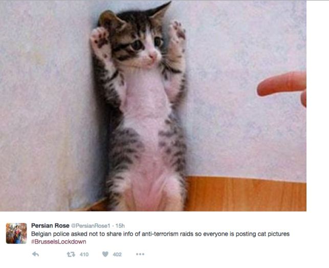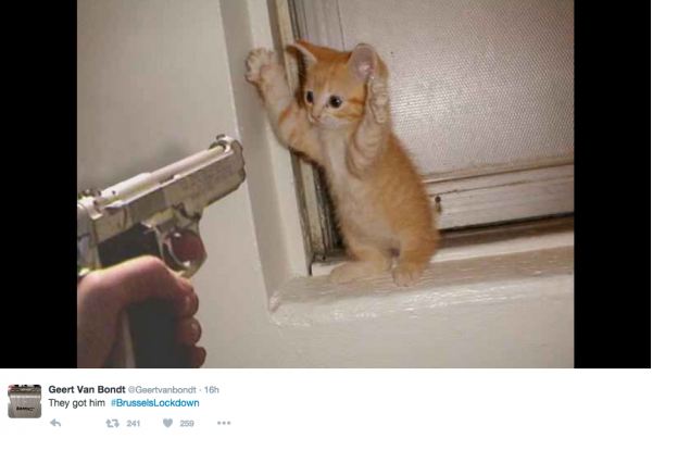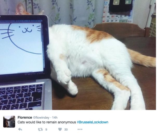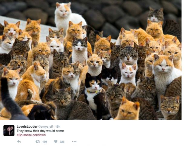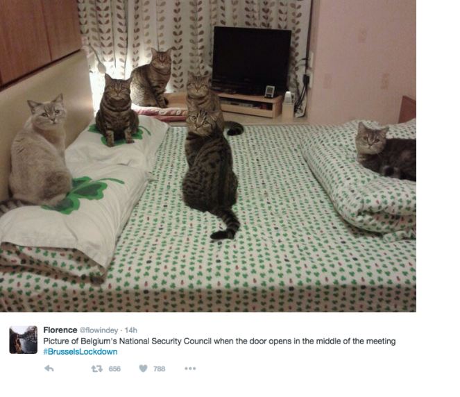 Police in Belgium asked residents not to post messages on social media during the security lockdown, so residents have responded with a slew of cat pictures on twitter - all with the hashtag #BrusselsLockdown.